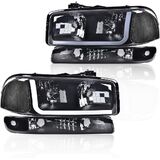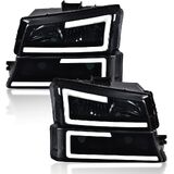 مجموعة المصابيح الأمامية LED DRL متوافقة مع Chevy Silverado Avalanche 2003-2006 1500 2500 3500&HD للسائق وجانب الركاب، عدسة دخانية سوداء عاكسة شفافة in Kuwait