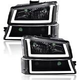 مجموعة المصابيح الأمامية LED DRL متوافقة مع Chevy Silverado Avalanche 2003-2006 1500 2500 3500&HD للسائق وجانب الركاب، عدسة دخانية سوداء عاكسة شفافة