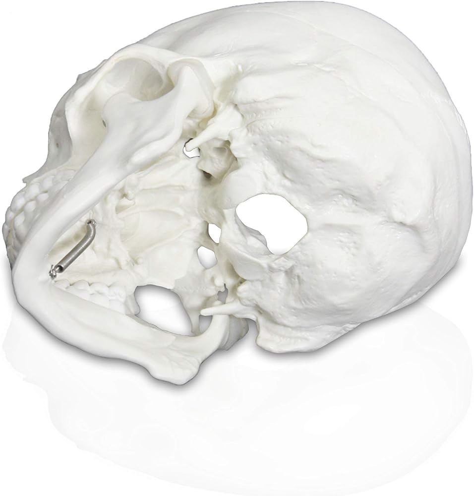 Removable skull cap can be disassembled into 3 parts, the skull cap, skull base and mandible for further study of the skull's interior structure