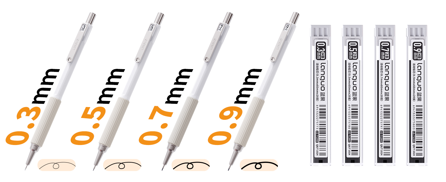 【توازن الوزن وقبضة مريحة】تتميز الأقلام الميكانيكية بطرف معدني وموزع نحاسي لتحقيق مركز منخفض للجاذبية، مما يوفر توازنًا مثاليًا للوزن. توفر القبضة المطاطية قبضة مريحة وغير قابلة للانزلاق.