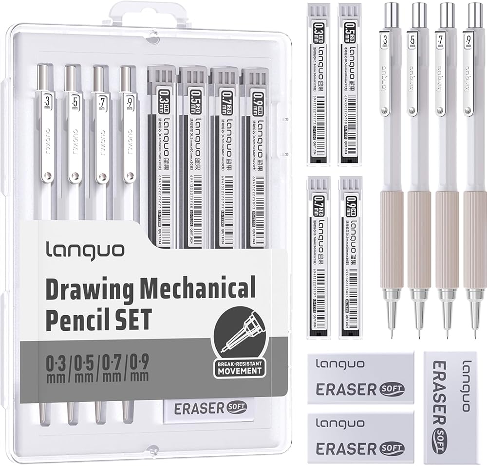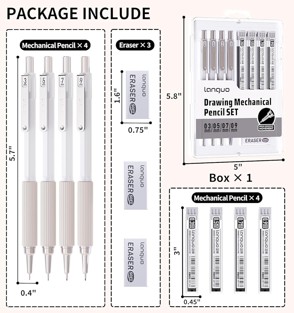 【مجموعة الكل في واحد مع حافظة】تحتوي المجموعة على 4 قطع أقلام رسم ميكانيكية 0.7 مم، وأنبوبين من سلاسل أقلام الرصاص HB (20 قطعة لكل أنبوب)، وأنبوبين من سلاسل أقلام الرصاص 2B (20 قطعة لكل أنبوب)، و3 قطع ممحاة؛ يشتمل على حقيبة مريحة لسهولة التخزين والنقل