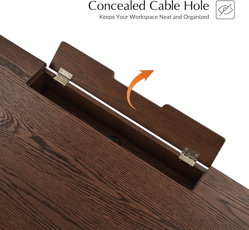 Concealed Cable Hole- To keep your workspace neat and organized, the desk includes a hidden cable hole that allows you to manage electrical cords, charging cables, and wires discreetly, preventing tangling and maintaining a tidy appearance.