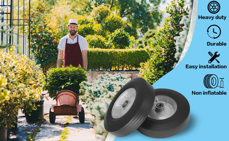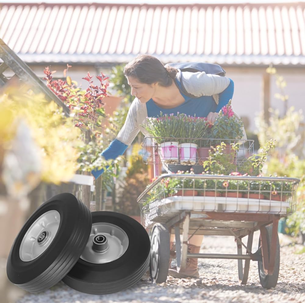 【شديدة التحمل】 توفر هذه العجلات المطاطية الصلبة الخالية من المسطحة امتصاصًا رائعًا للصدمات وتبطينًا ومقاومة للثقوب. وبفضل قدرتها العالية على تحمل الوزن، فهي مناسبة تمامًا لمجموعة واسعة من الاستخدامات، سواء في البيئات المنزلية أو التجارية. هذه العجلات مناسبة بشكل خاص للتطبيقات الثقيلة، مثل الشاحنات اليدوية الصناعية وعربات الحدائق.