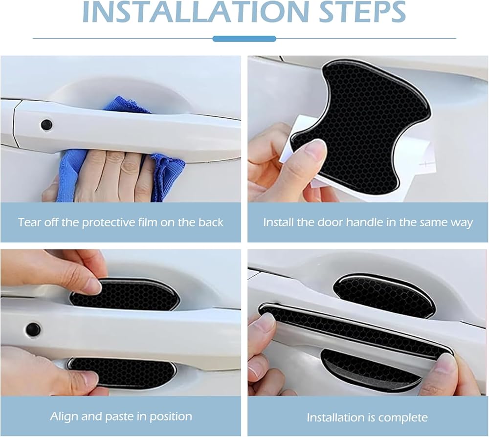 Easy Installation: Simply tear off the white backing paper on the sticker's back, stick it on top of your car door handle, and check for a firm fit—installation is fast and requires no extra tools or complex steps.