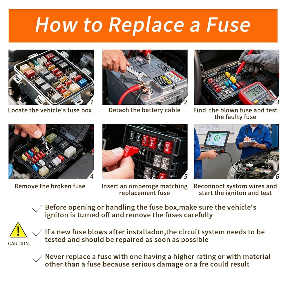 تطبيق واسع - يمكن استخدام مجموعة صمامات السيارة هذه لحماية سيارتك والأجهزة الكهربائية الأخرى من الدائرة القصيرة والحمل الزائد وما إلى ذلك. إنها مثالية للعديد من السيارات والشاحنات وسيارات الدفع الرباعي والمركبات ومركبات ATV وUTVs وCamper RV والدراجات النارية والأسطول وسيارات الجولف والقوارب وعربات الثلوج ومعظم تطبيقات التيار المستمر العامة وما إلى ذلك.