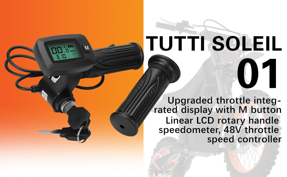 شاشة Tuttio Soleil 01 الجديدة المتكاملة للخانق مع زر M، ومقابض الجانب الأيسر فقط للدراجة الترابية الكهربائية Soleil 01، ملاحظة: لا يمكن استخدام الخانق الجديد والخانق القديم بالتبادل.48 فولت