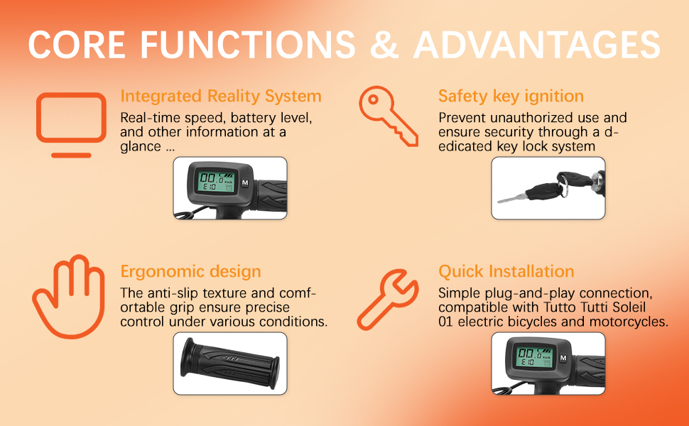 الطراز الوحيد المتوافق: شاشة الخانق المدمجة الجديدة مع مفتاح M، متوافقة فقط مع الدراجة الترابية الكهربائية Tuttio Soleil 01، يرجى التحقق بعناية من الخانق على دراجتك الكهربائية لضمان التوافق الدقيق