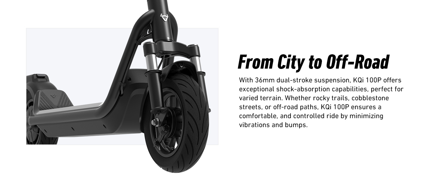 • 【من المدينة إلى الطرق الوعرة 】مع نظام تعليق مزدوج الشوط مقاس 36 مم، يوفر NIU 100P قدرات استثنائية لامتصاص الصدمات، مما يجعله مثاليًا للتضاريس المتنوعة. سواء كانت الممرات الصخرية أو الشوارع المرصوفة بالحصى أو الطرق الوعرة، يضمن NIU 100P قيادة مريحة ومتحكم بها من خلال تقليل الاهتزازات والمطبات.