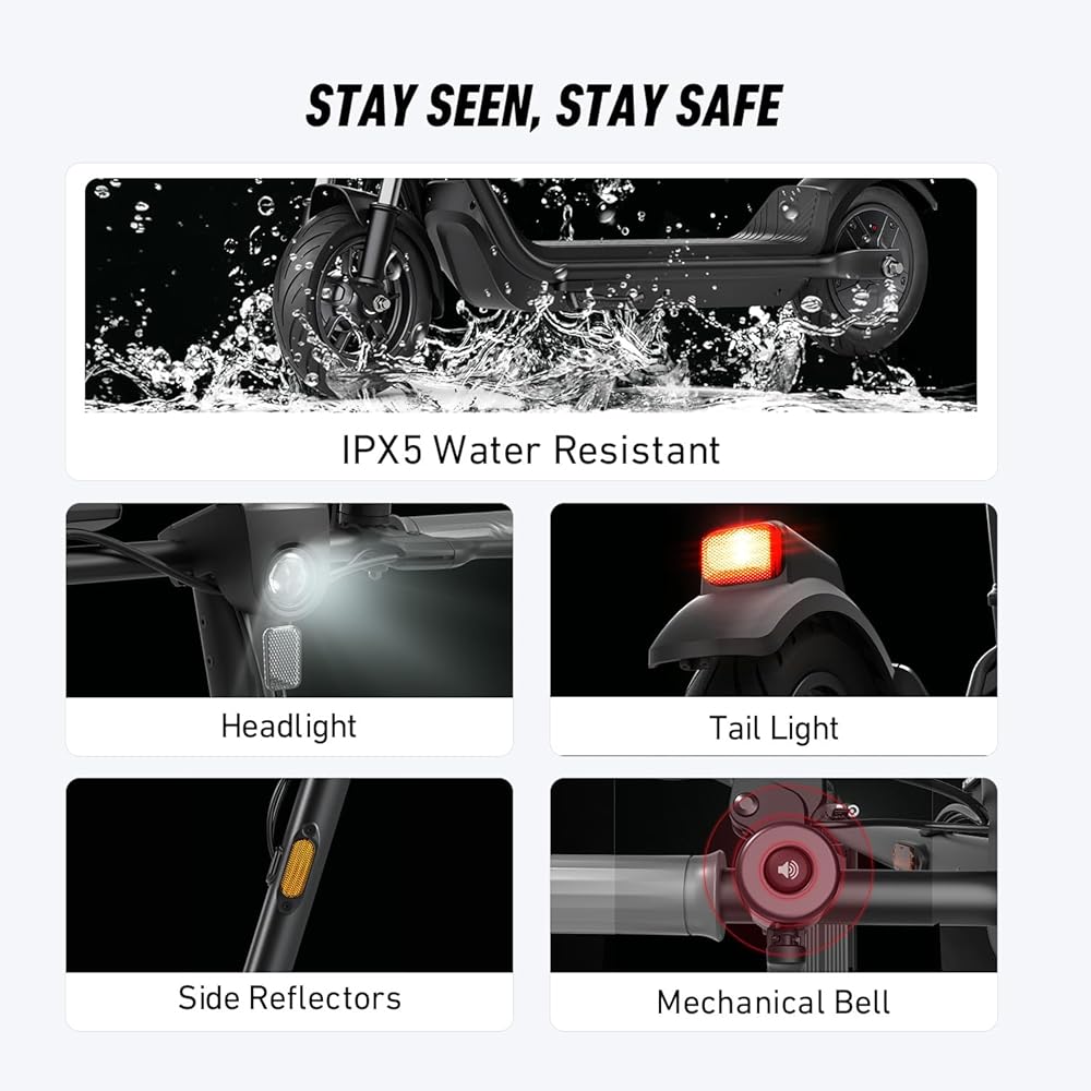 • 【راحة معززة أثناء الركوب】 يأتي 100P مزودًا بإطارات أنبوبية هوائية مقاس 9.5 بوصة توفر قيادة سلسة ومستقرة، وتمتص الصدمات بشكل فعال على التضاريس غير المستوية. يزن هذا السكوتر 38.1 رطلًا فقط، وهو خفيف الوزن ولكنه متين، ويدعم الدراجين حتى وزن 265 رطلاً.
