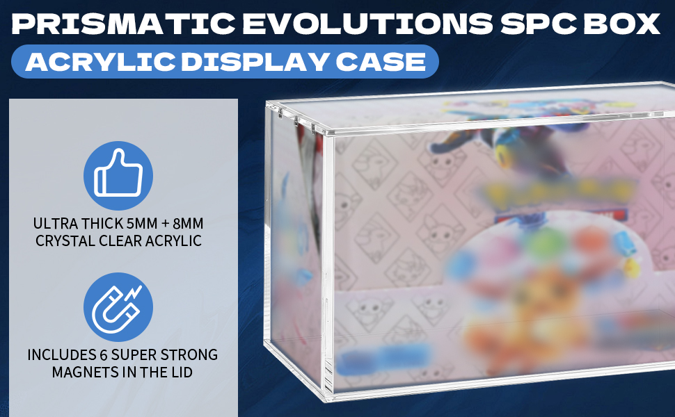Acrylic Display Case with Magnetic Lid Compatible with Prismatic Evolutions Booster Box, 8+5mm Thick Large Clear Storage Case for PKMN, Dustproof Protective Display Box, Gifts for Cards Collectors