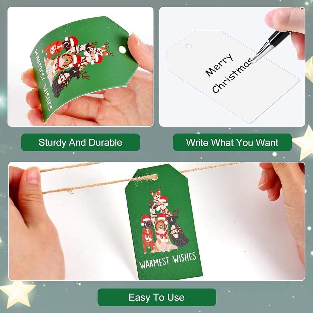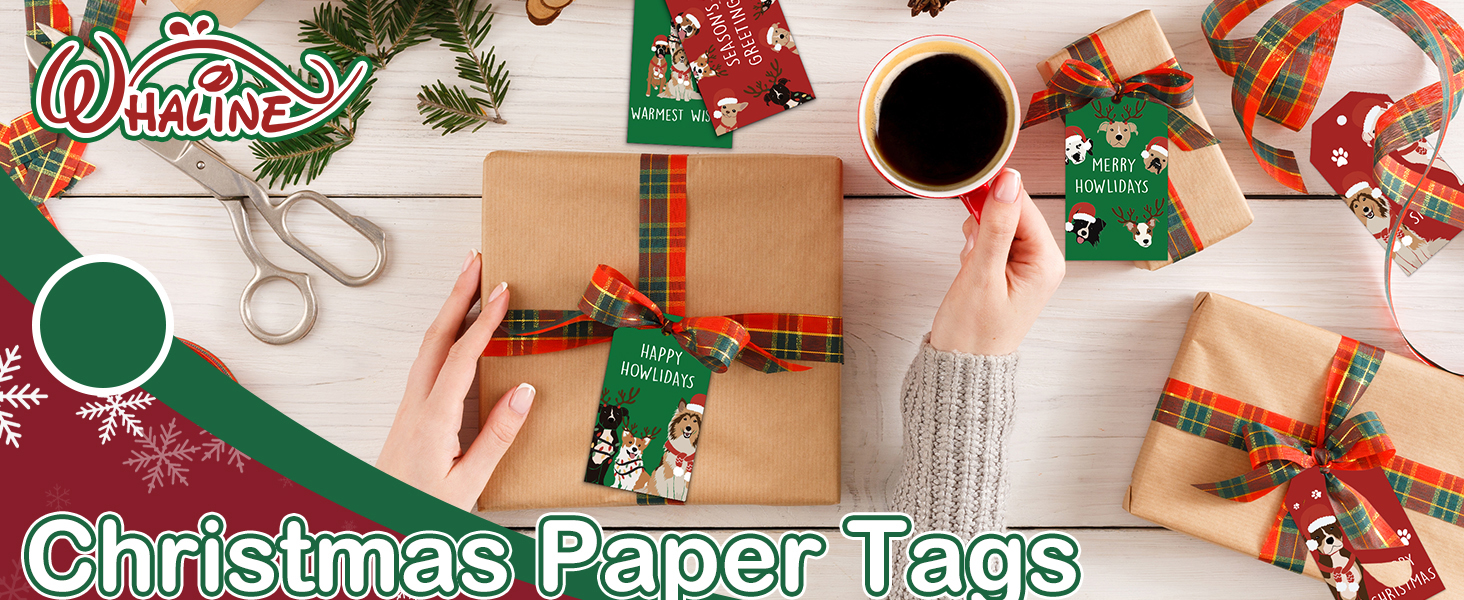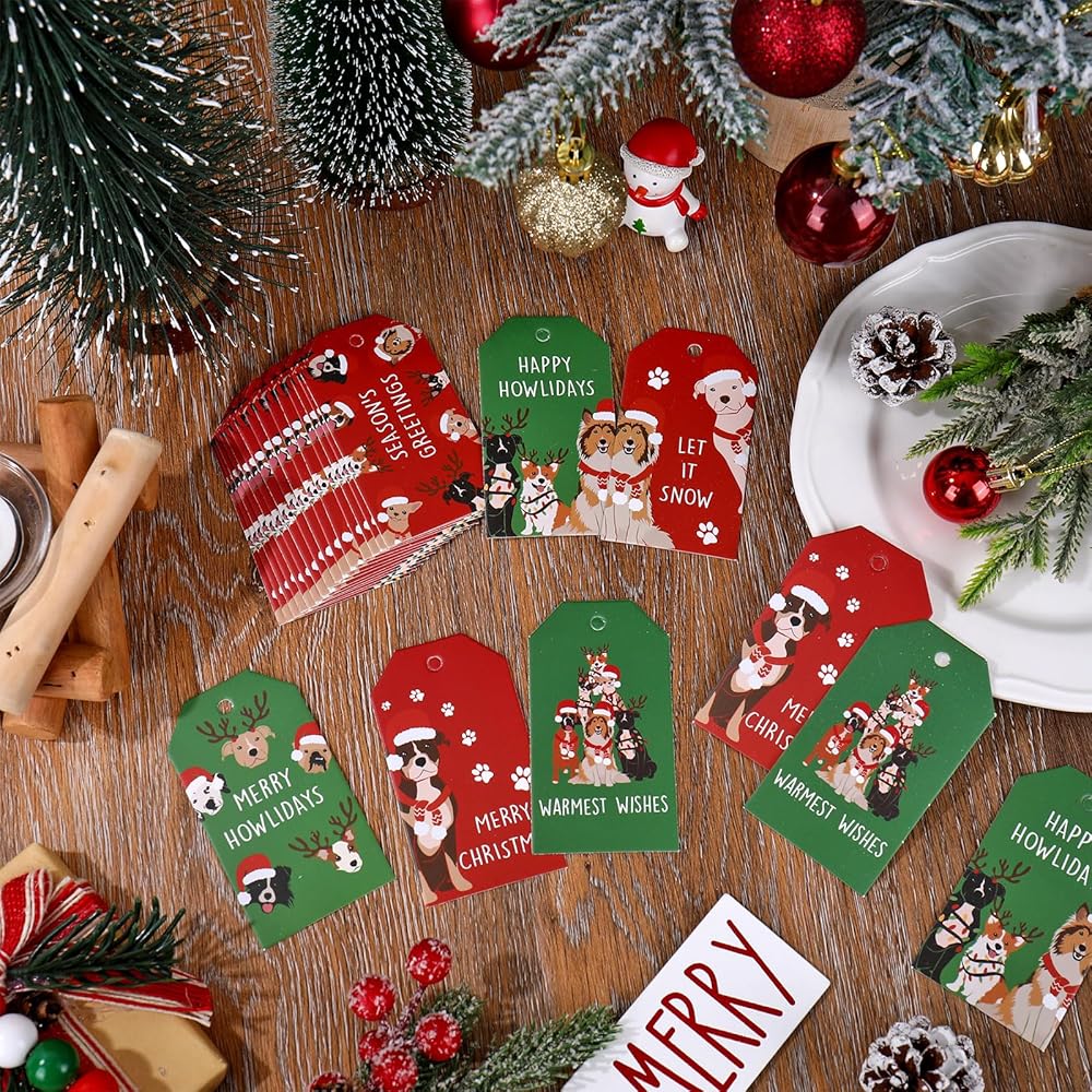 Whaline 90 قطعة عيد الميلاد ورقة العلامات الأحمر الأخضر الكلب تسميات معلقة اسم العلامات مع حبل القنب لفصل الشتاء عيد الميلاد حفلة DIY بها بنفسك لوازم الحرف