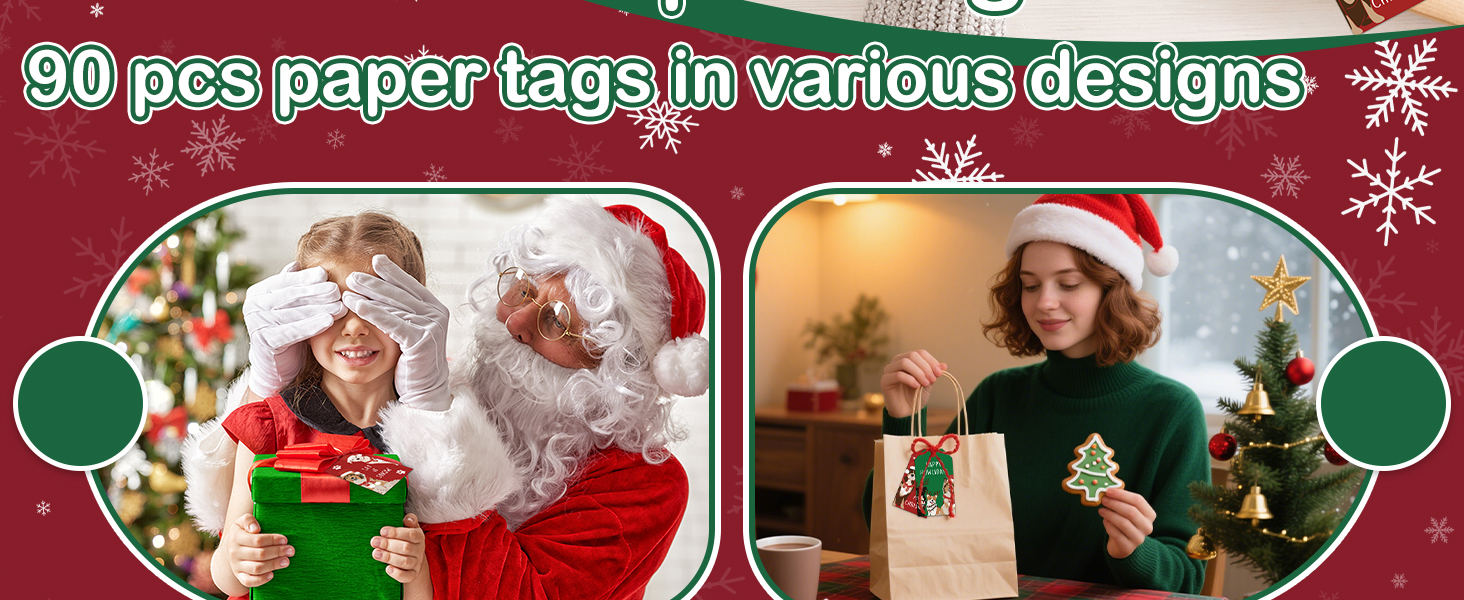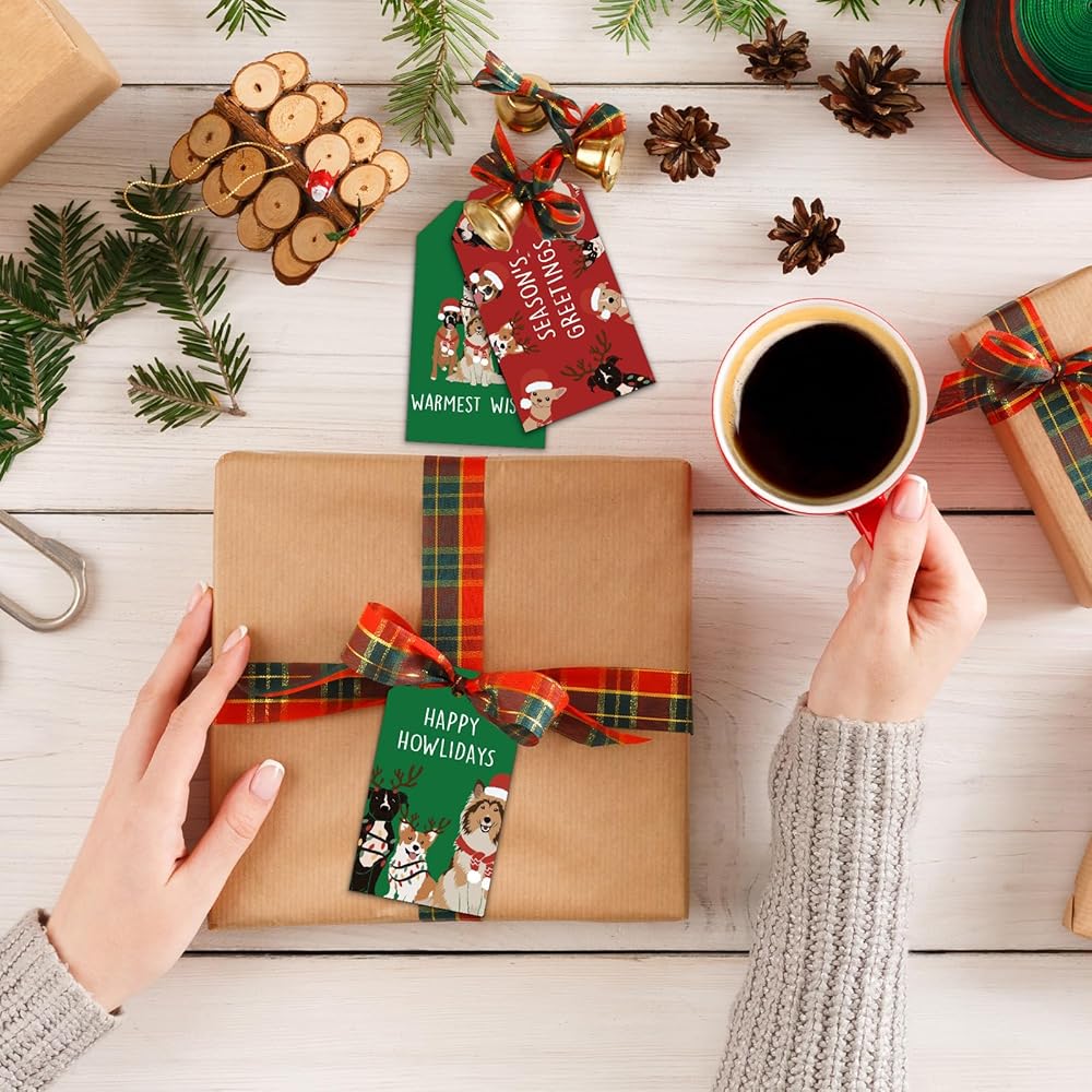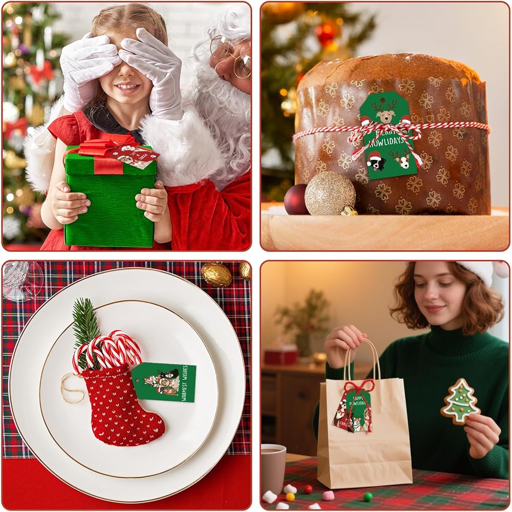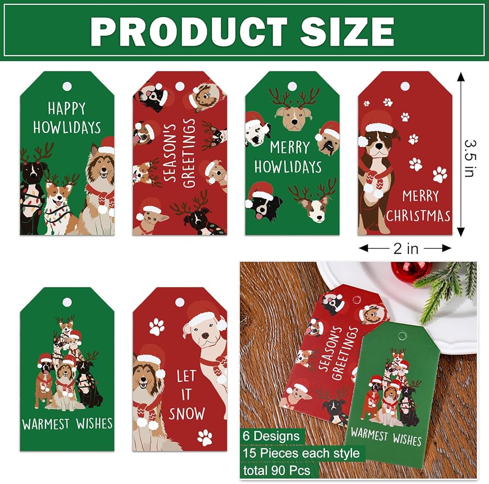 Whaline 90 قطعة عيد الميلاد ورقة العلامات الأحمر الأخضر الكلب تسميات معلقة اسم العلامات مع حبل القنب لفصل الشتاء عيد الميلاد حفلة DIY بها بنفسك لوازم الحرف