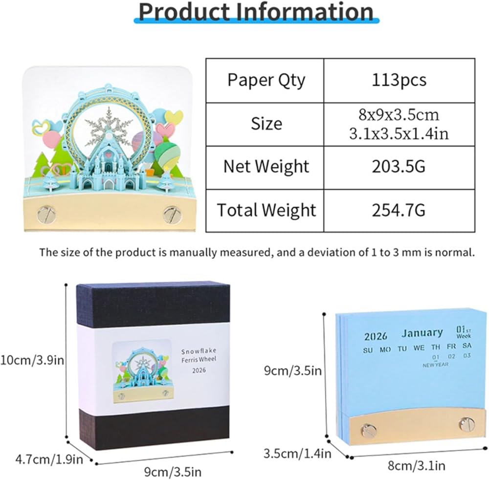 تقويم قطعة الوقت لعام 2026: عند استخدام تقويم المكتب ثلاثي الأبعاد لعام 2026، يتم تمزيق الملاحظات والتقويمات اللاصقة غير اللاصقة، وسوف تحصل على مفاجآت ومرح مستمر. وبحلول نهاية العام، سيتم الكشف عن نموذج ساحر، ينقلك إلى عالم غريب من السحر والإنتاجية.