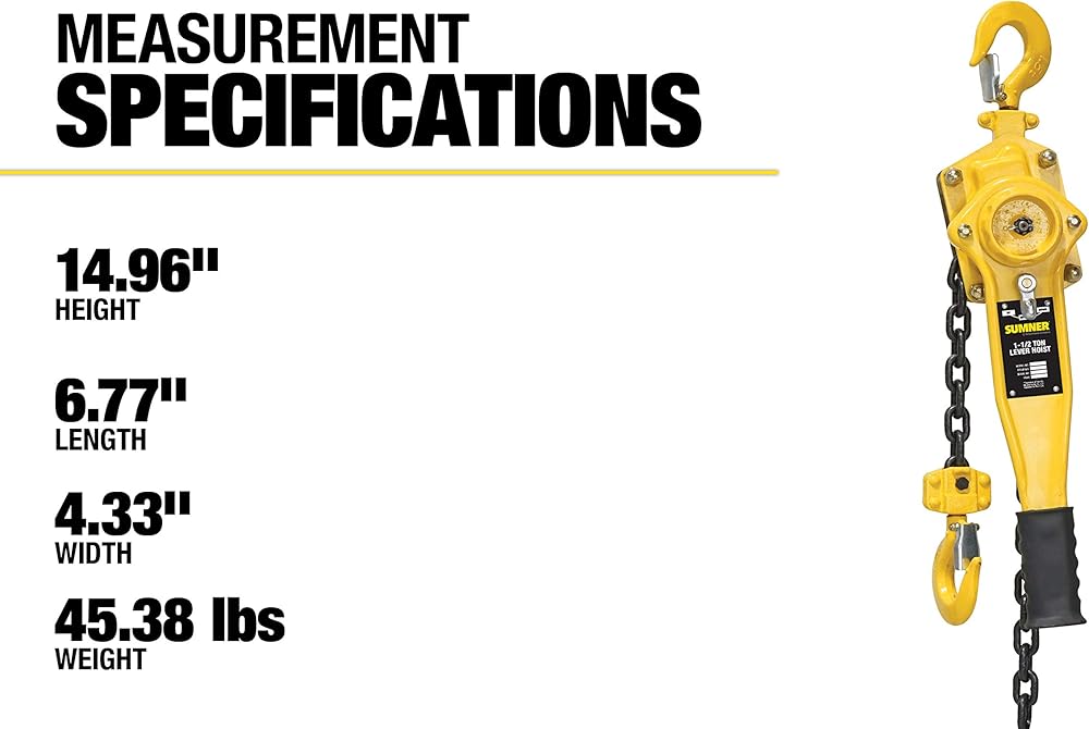 Southwire SUMNER 1-1/2 Ton Lever Hoist with 20 ft. Chain Fall