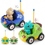 عبوتان من سيارات الديناصورات RC للأطفال - سيارات لعبة الديناصورات بالتحكم عن بعد مع الموسيقى والأضواء، هدية عيد ميلاد للأولاد من عمر 2 3 4 5 سنوات والأطفال الصغار بعمر 18 شهرًا فما فوق