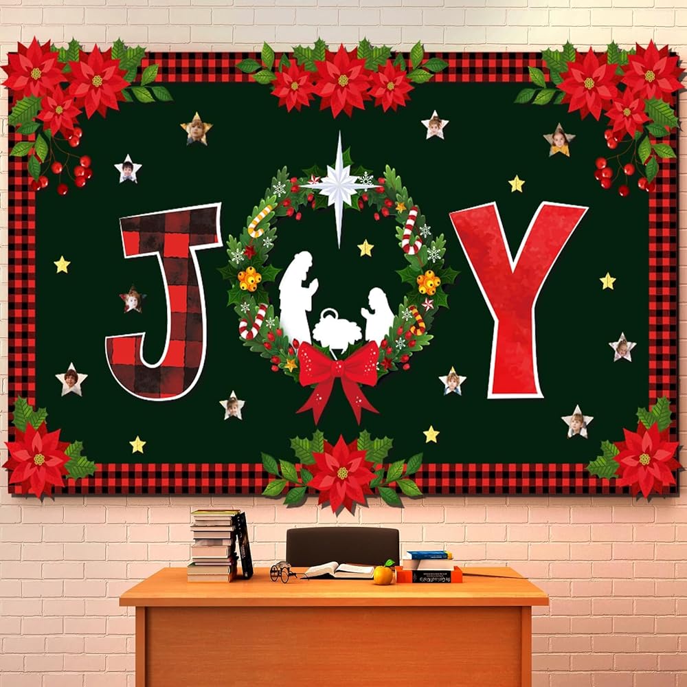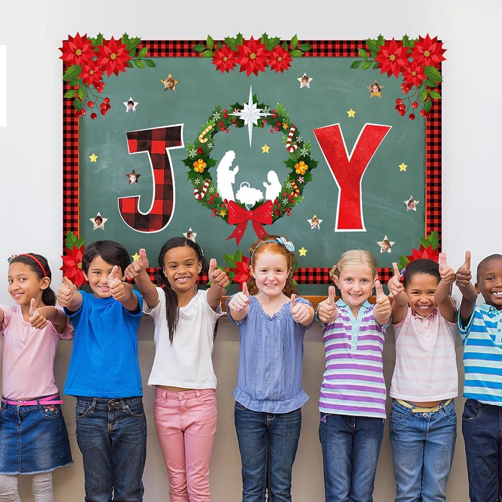 عيد الميلاد ميلاد الفرح نشرة لوحة الزينة مجموعة مع الحدود الجاموس منقوشة الدينية مشهد المهد ديكور الفصول الدراسية للمعلمين يسوع الميلاد القواطع للفصل المدرسة الفصول الدراسية لوحة الإعلانات