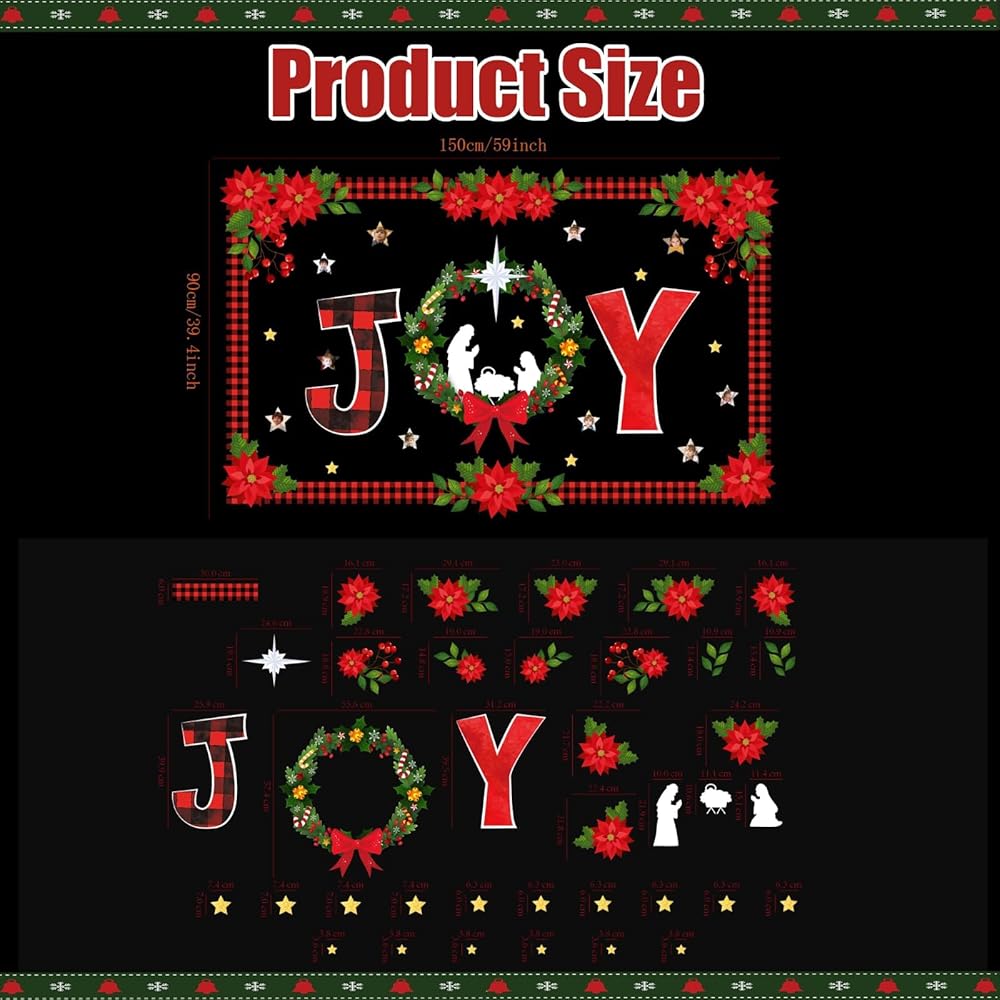 • مواد عالية الجودة: لوحة إعلانات ميلاد المسيح الدينية الخاصة بنا مصنوعة من بطاقة عالية الجودة، وهي متينة وقابلة لإعادة الاستخدام، وغير سامة ولا توجد رائحة غريبة، وتأتي مع أنماط طباعة جيدة، وتبدو مشرقة وحيوية للغاية، وسهلة جذب الأنظار.