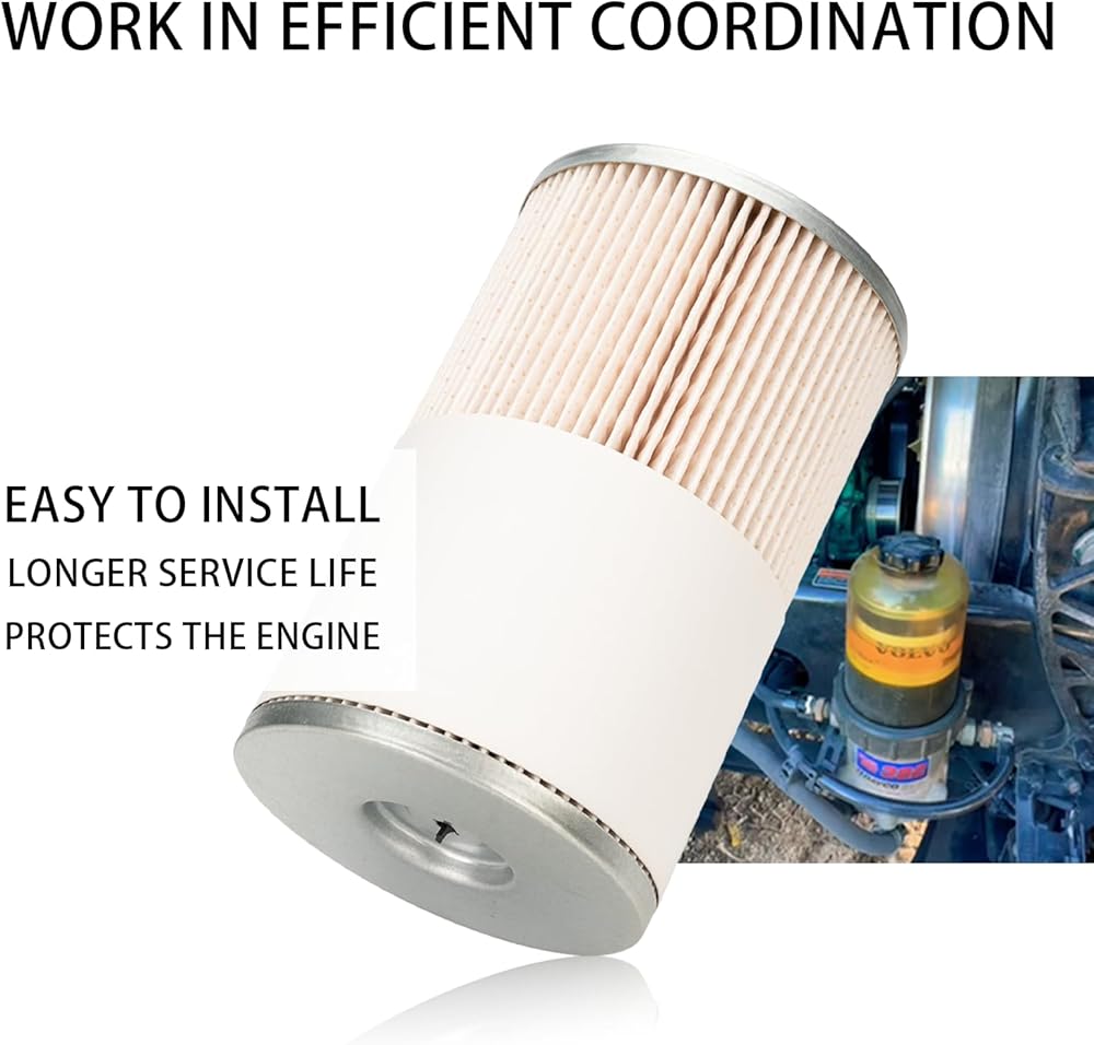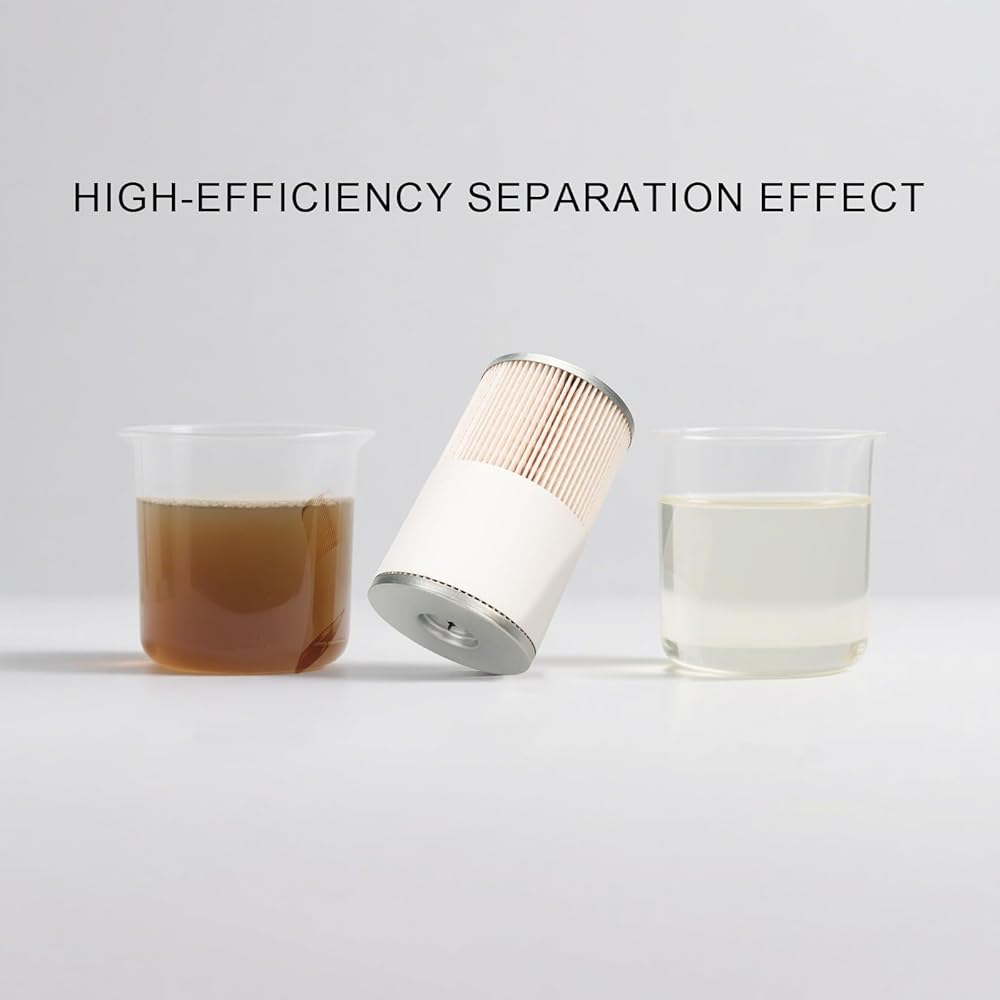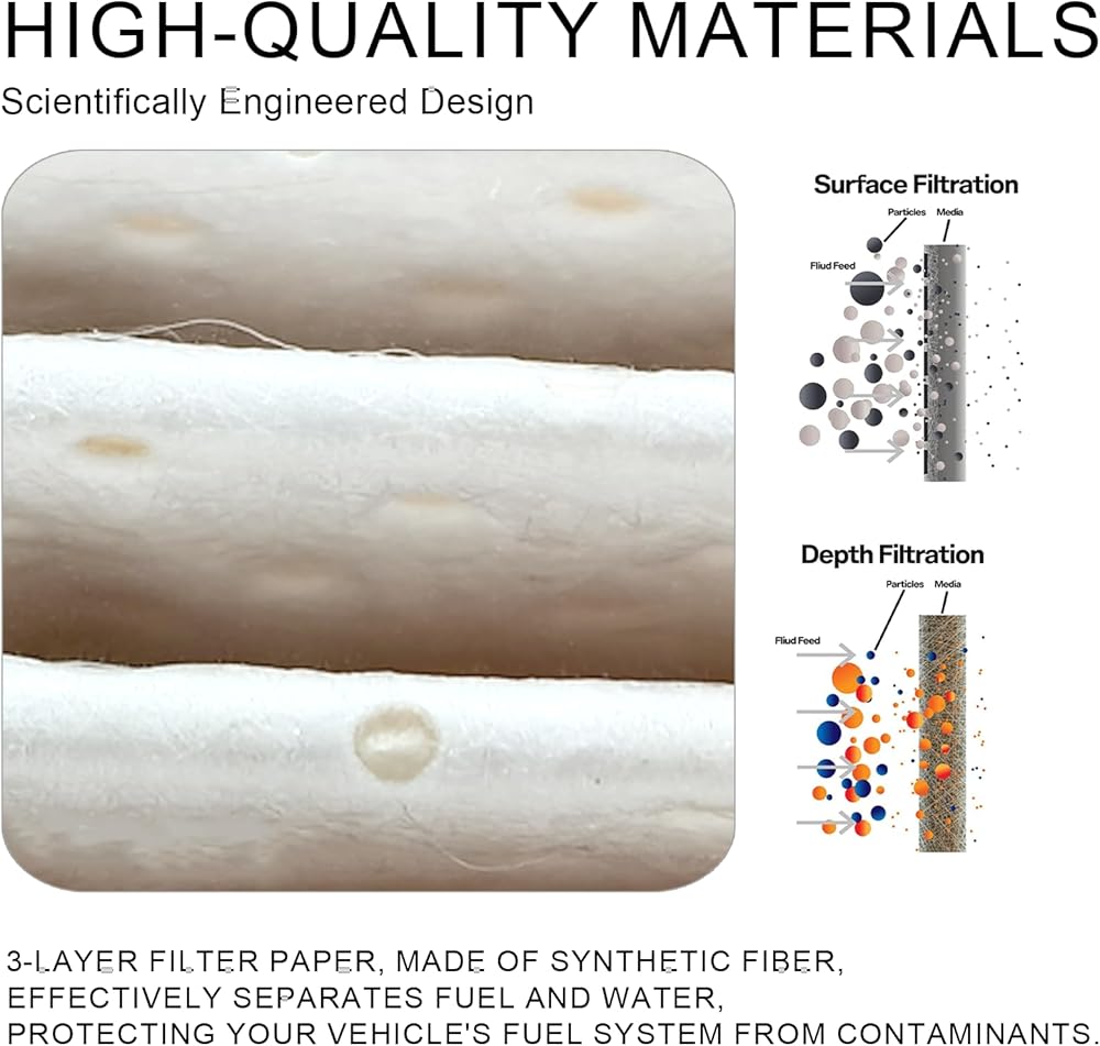 مواد موثوقة: فلتر فاصل الماء والوقود هذا مصنوع من ألياف صناعية ويشتمل على وسط عالي الكفاءة قادر على التقاط 98% من الجسيمات التي يصل قطرها إلى 25 ميكرون، مما يضمن وصول الوقود النظيف إلى الأجزاء الداخلية للمحرك.