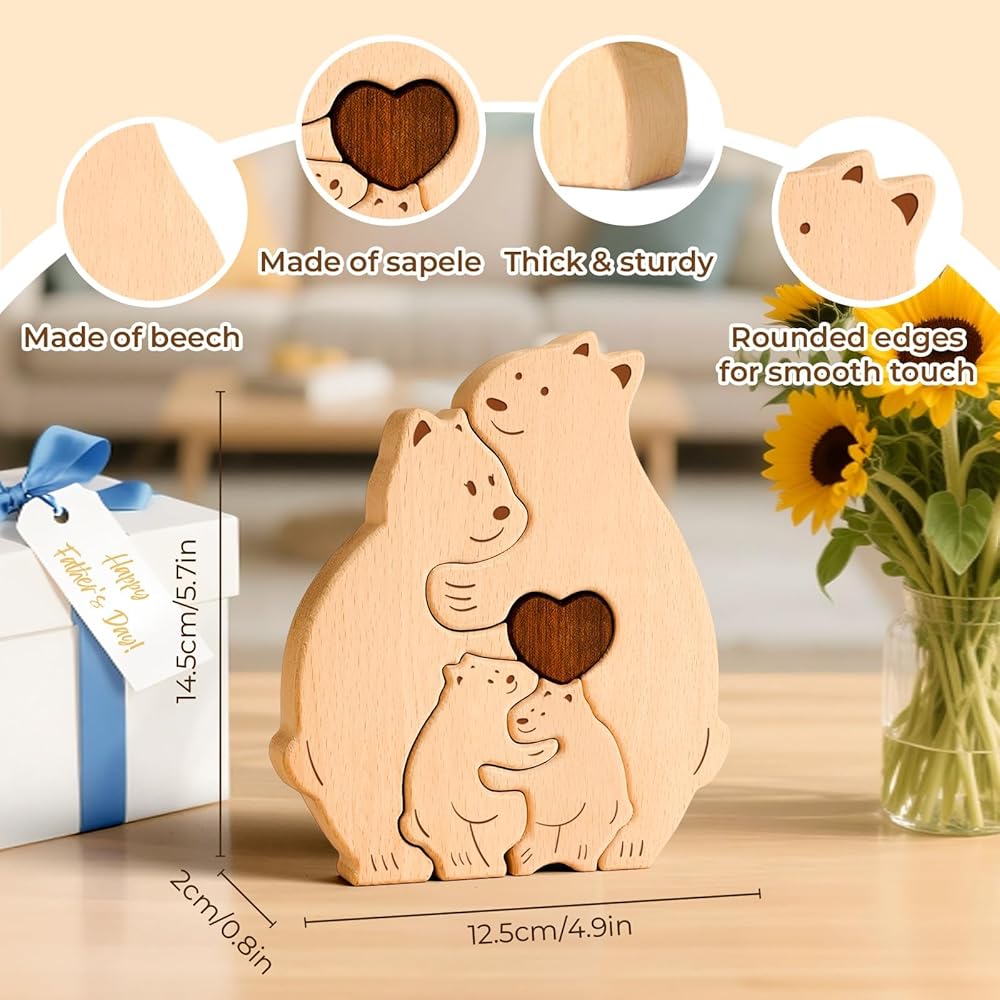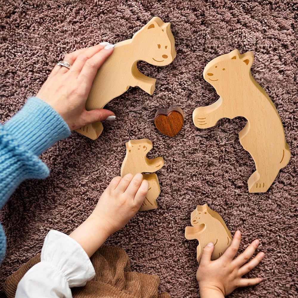 🐻✨ تصميم أحجية الدب - مصنوعة من خشب الزان عالي الجودة، تتميز هذه الأحجية المخصصة بصورة ظلية لعائلة الدب الدافئة 🐾. تتناسب قطع الأحجية معًا بسلاسة، مما يخلق عرضًا جميلاً بمجرد اكتمالها. القلب الموجود في المنتصف ❤️ مصنوع من خشب سبيلي، مما يوفر تباينًا غنيًا باللون البني المحمر. مزيج مثالي من المواد الطبيعية 🌳 للحصول على هدية لا تنسى 🎁!