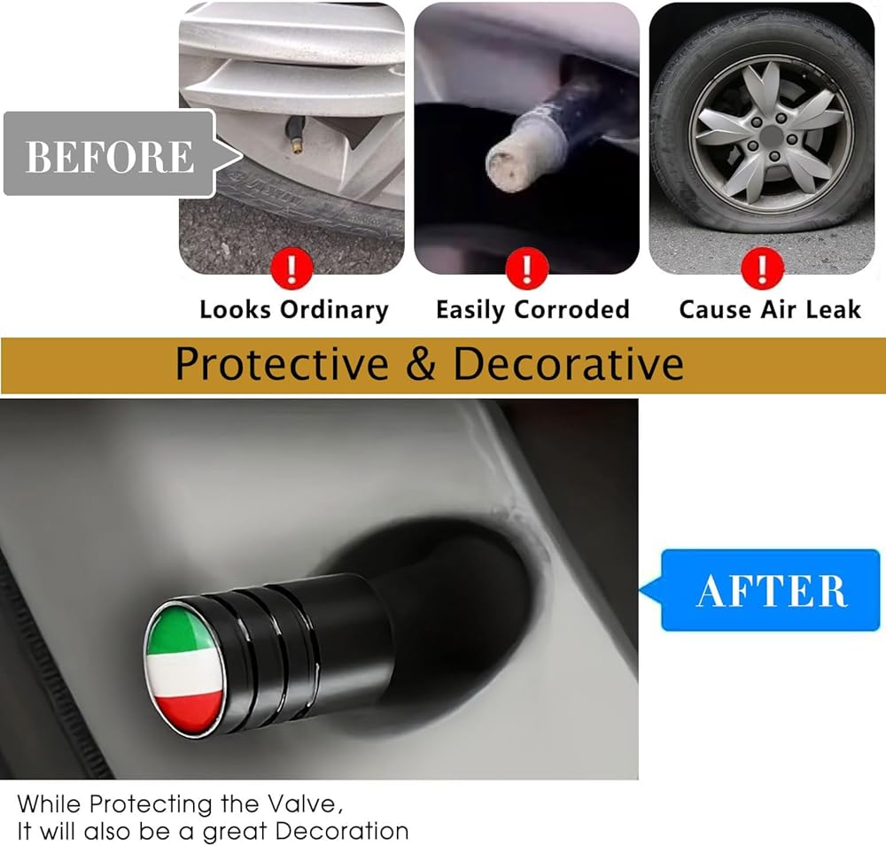 Premium Quality Material: The Valve Stem Cap of 2 white stripes are Made from high-strength aluminum alloy, these wheel nut caps are designed for durability and resistance to corrosion, ensuring long-lasting performance