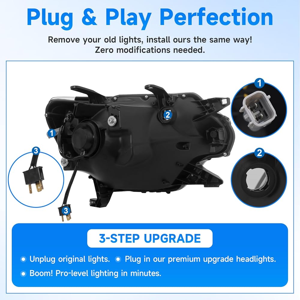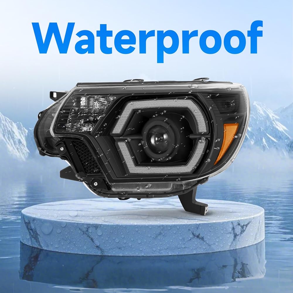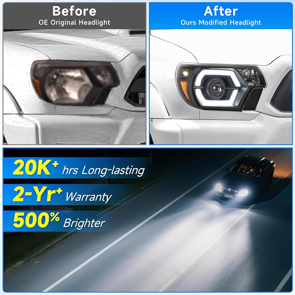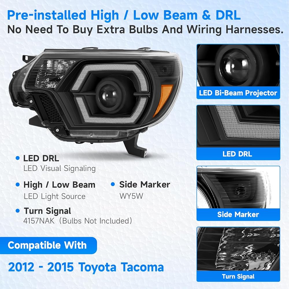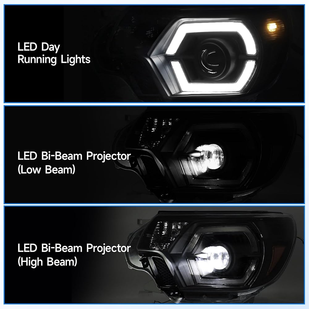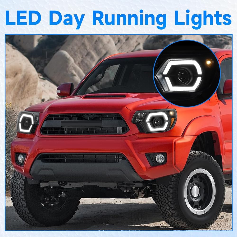 ELH 500% مجموعات المصابيح الأمامية الأكثر سطوعًا تناسب 2012 2013 2014 2015 12 13 14 15 تويوتا تاكوما مع LED DRL كشافات أمامية سوداء الإسكان العنبر عاكس