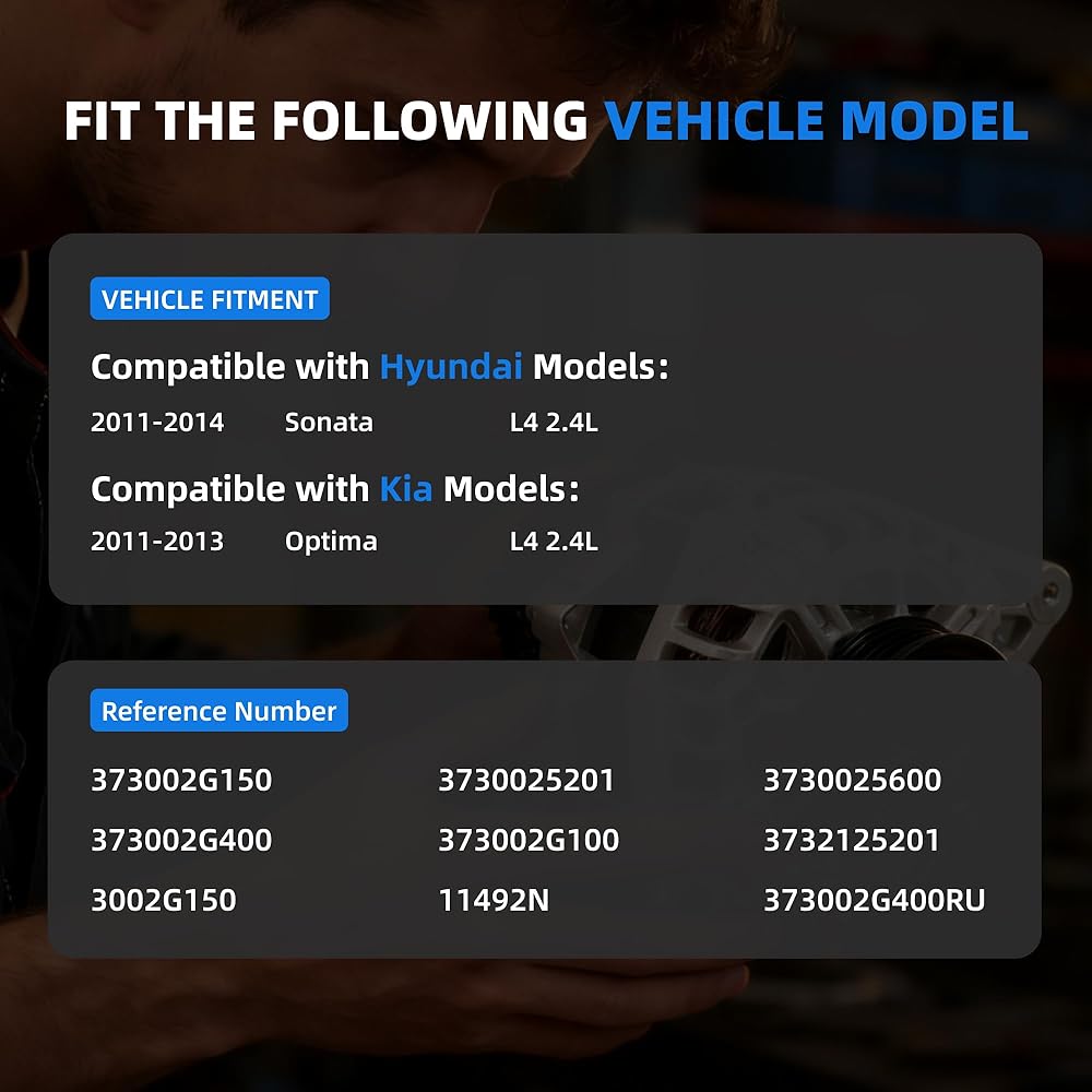 【Exact Fit & Broad Compatibility】: Direct replacement alternator fit for (373002G150,3730025201,3730025600,373002G400,373002G100,3732125201,3002G150,11492N,373002G400RU). Verify your vehicle details and part number for a perfect, hassle-free fitment