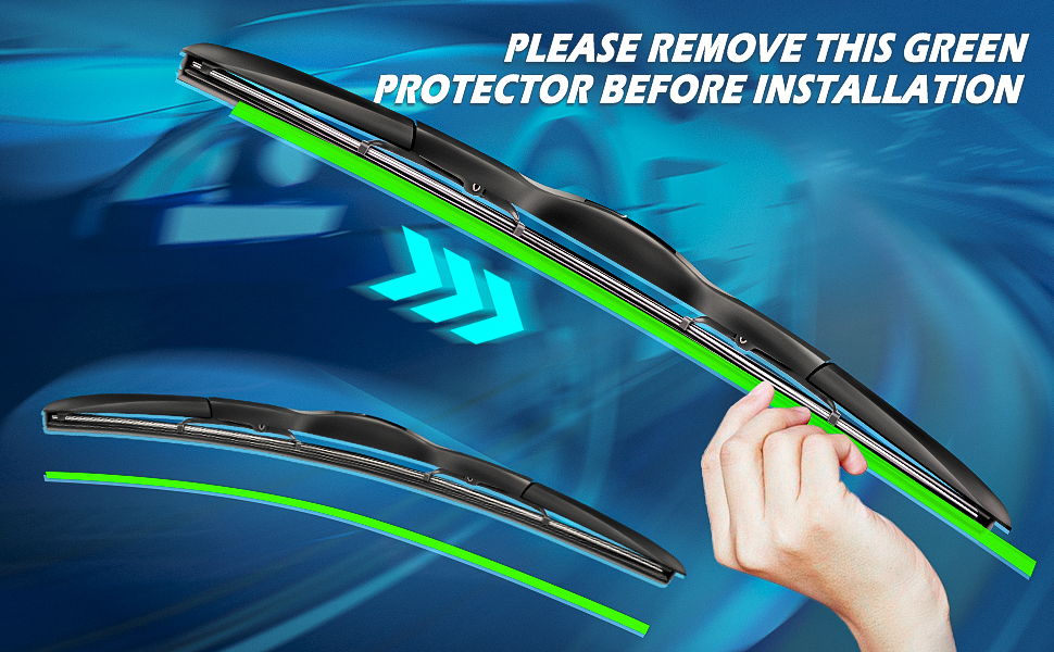 0 STREAK COMMITMENT: Ablewipe windshield wiper blades reduces drag, keeps wiping stable. The extra rubber material of the wiper blades is tightly attached to the windshield, without leaving any gaps, sweep away the rain, 180 degrees without dead angle.( Pls take the green blade`s cover off before installation)