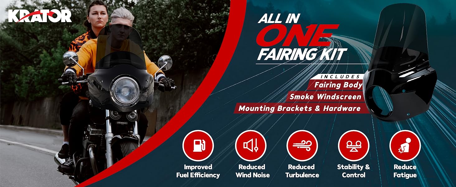 [يحسن الراحة ويقلل من الإرهاق] يعمل تصميمنا على تحويل ضغط الرياح بعيدًا عن جسمك، مما يقلل من التعب في يديك وذراعيك وصدرك مما يجعل الركوب أكثر راحة. يساعد وجود الزجاج الأمامي الذي يحجب الريح على تقليل التعب مما يجعل الرحلات الطويلة أكثر متعة في النهاية. يعمل التصميم الديناميكي الهوائي للهدية على تحسين الاستقرار العام والتحكم عند السرعات العالية. تخترق الهدية الهواء بشكل أكثر فعالية مما يؤدي إلى تقليل السحب وتحسين كفاءة استهلاك الوقود.