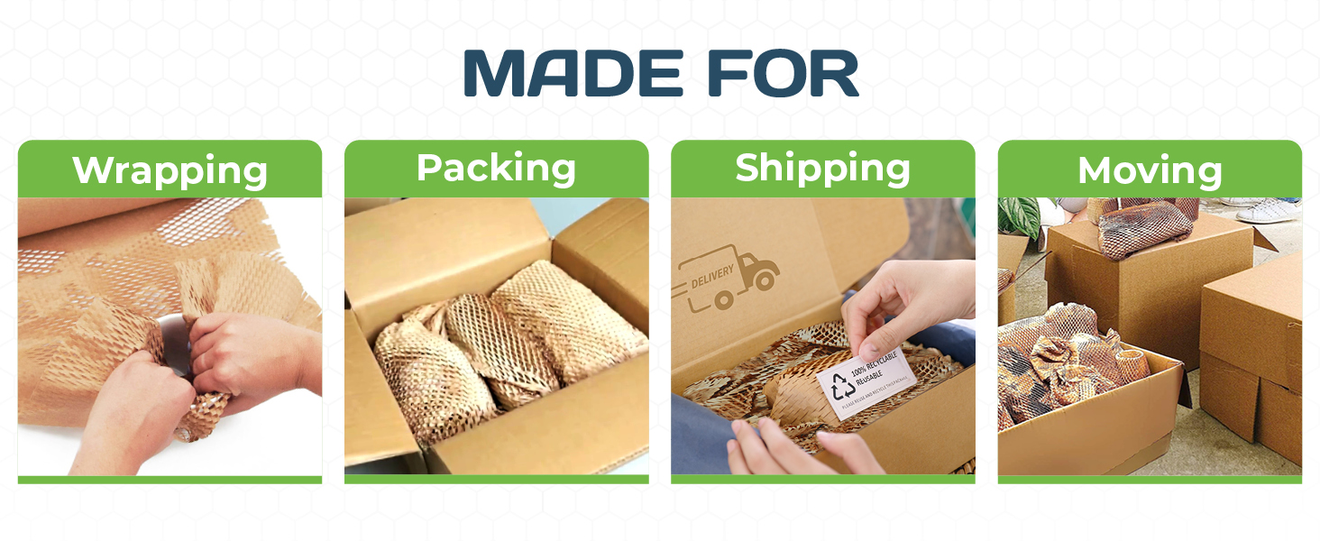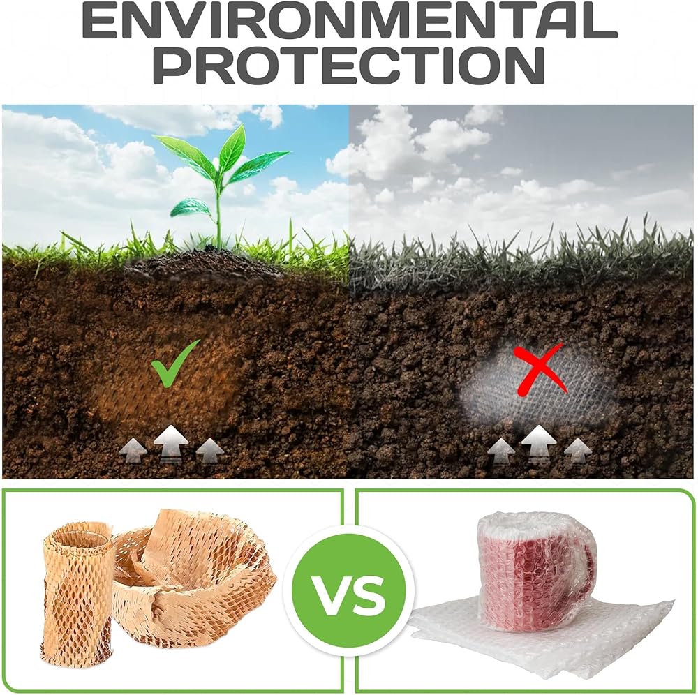 ECO-FRIENDLY AND SUSTAINABLE - Our honeycomb packing paper is made from PEFC-certified Canadian paper that is 100% sustainable and replaces traditional plastic and bubblewrap for packing, offering an environmentally-friendly solution without compromising on protection for fragile items during shipment