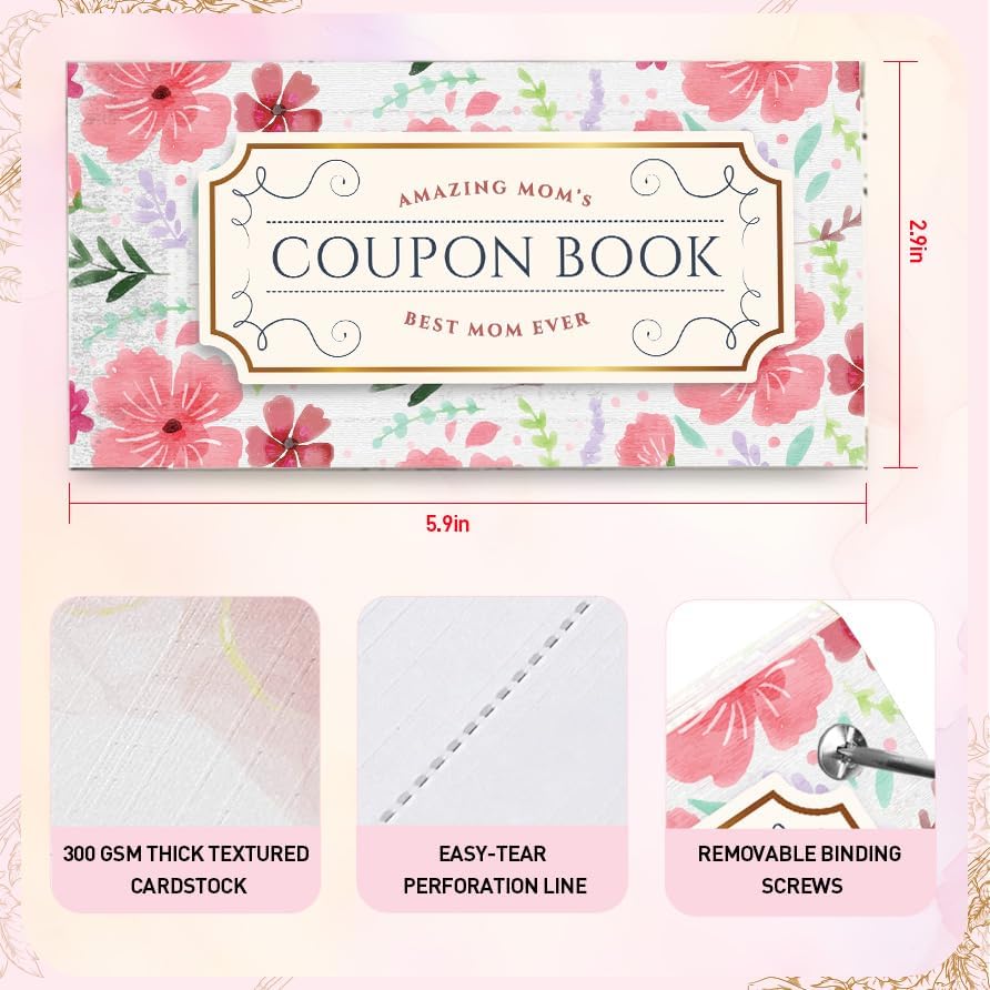 • 🎁 READY-TO-GIFT QUALITY – Made with 300gsm thick cardstock with easy tear-off perforation for smooth use. A removable screw binder allows you to add new coupons anytime. Packaged in an elegant gift box for a beautiful presentation—no wrapping needed!