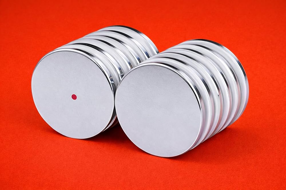 Neodymium Disc Magnets 1.26" x 1/8" (12 Pack) – Rare Earth NdFeB Discs with Red North Pole Marking, Nickel Coated for Durability and Corrosion Resistance