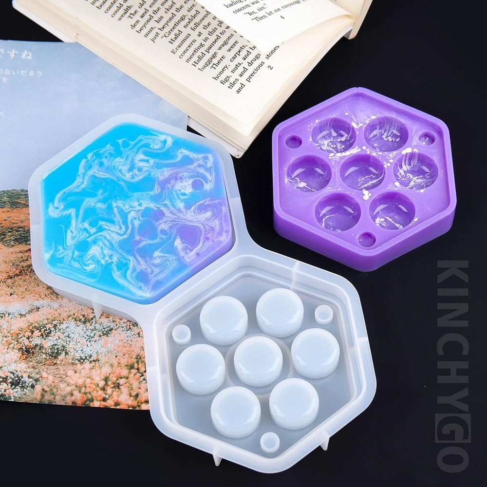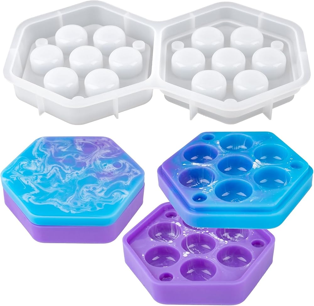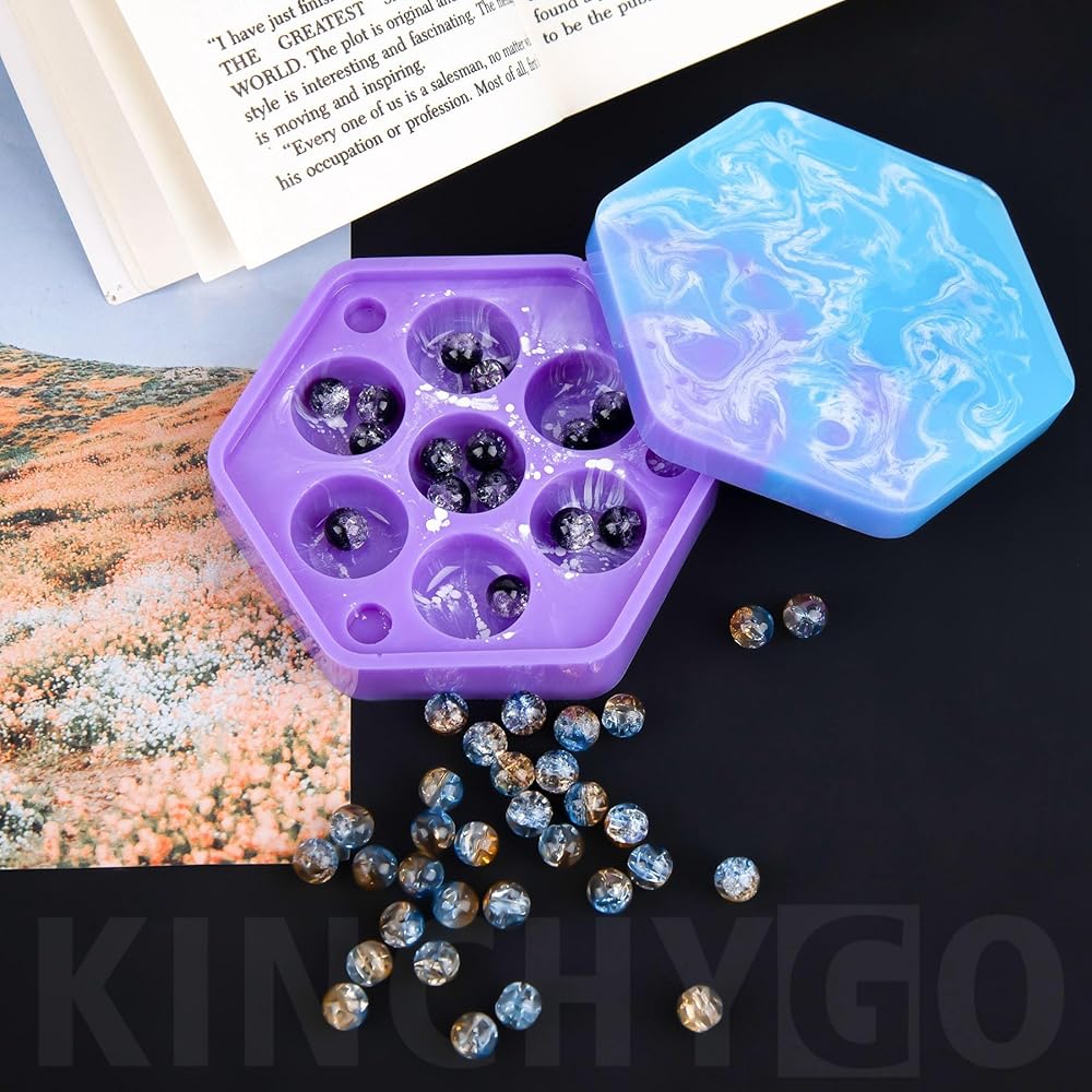 قالب صندوق النرد، صندوق سداسي، قوالب سيليكون من راتنجات الإيبوكسي مع غطاء لتخزين النرد