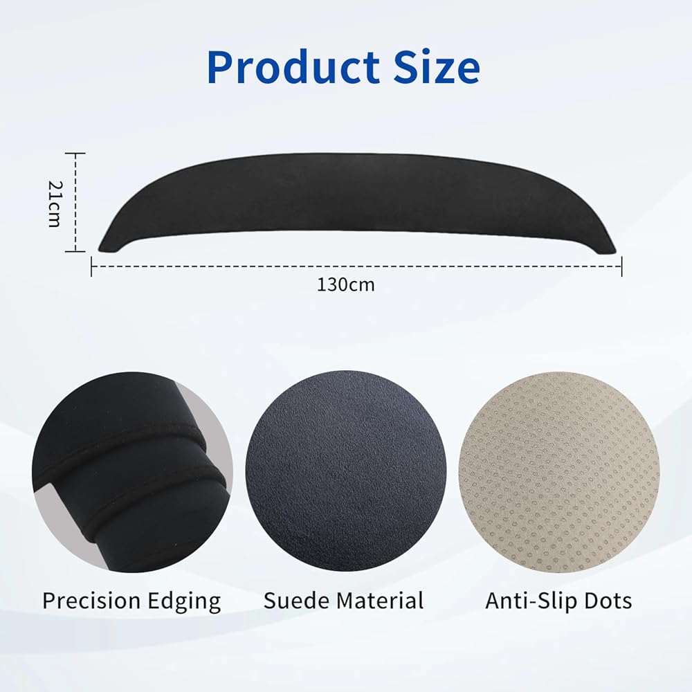 The mat's top layer is made of high-quality suede-like material that is not only soft to the touch but also provides excellent insulation against heat and electric. This premium surface resists wrinkles and fading while effectively reducing glare from the sun and overhead lights, ensuring a safer and more comfortable ride for both the driver and passengers.