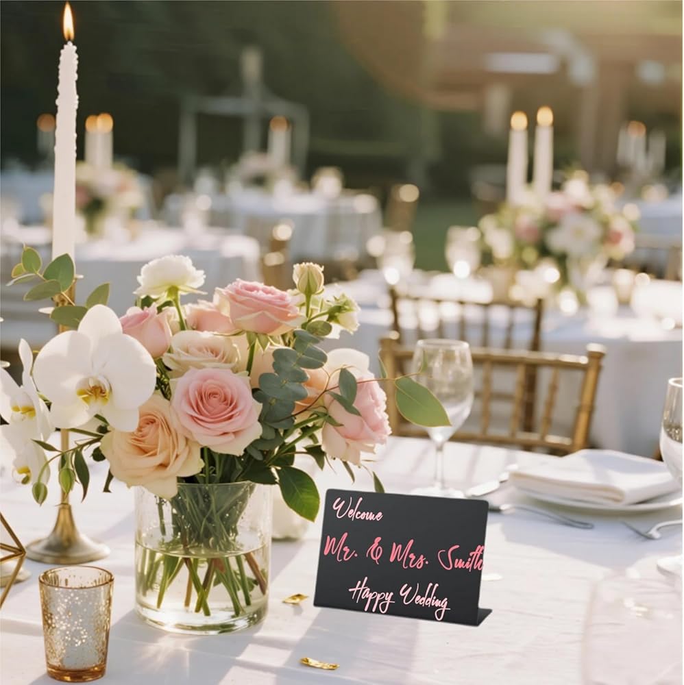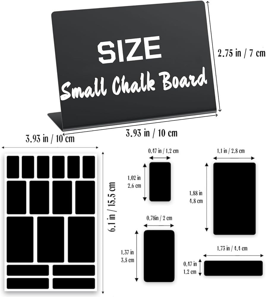 COMPLETE SET: 20 pack of 4"x3" mini chalkboard signs with 5 chalk markers and 85 adhesive labels included for immediate use