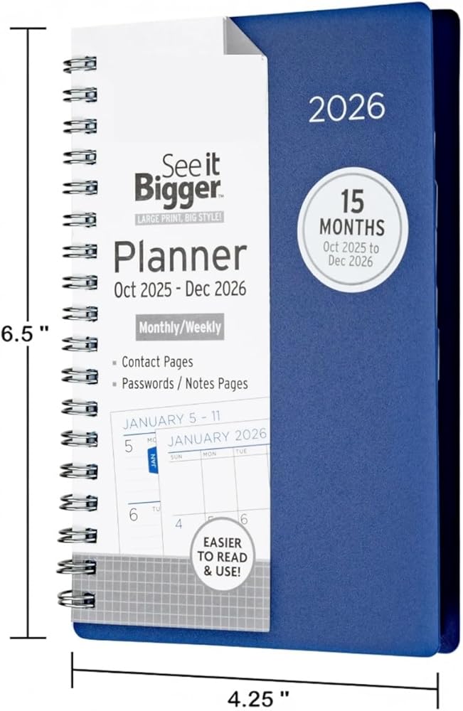 PlanAhead شاهد IT أكبر وصغير الحجم، حجم الجيب أكتوبر 2025 - ديسمبر 2026 مخطط شهري/أسبوعي تقريبًا. 4 × 6 بوصة وقلم فلورسنت مزدوج