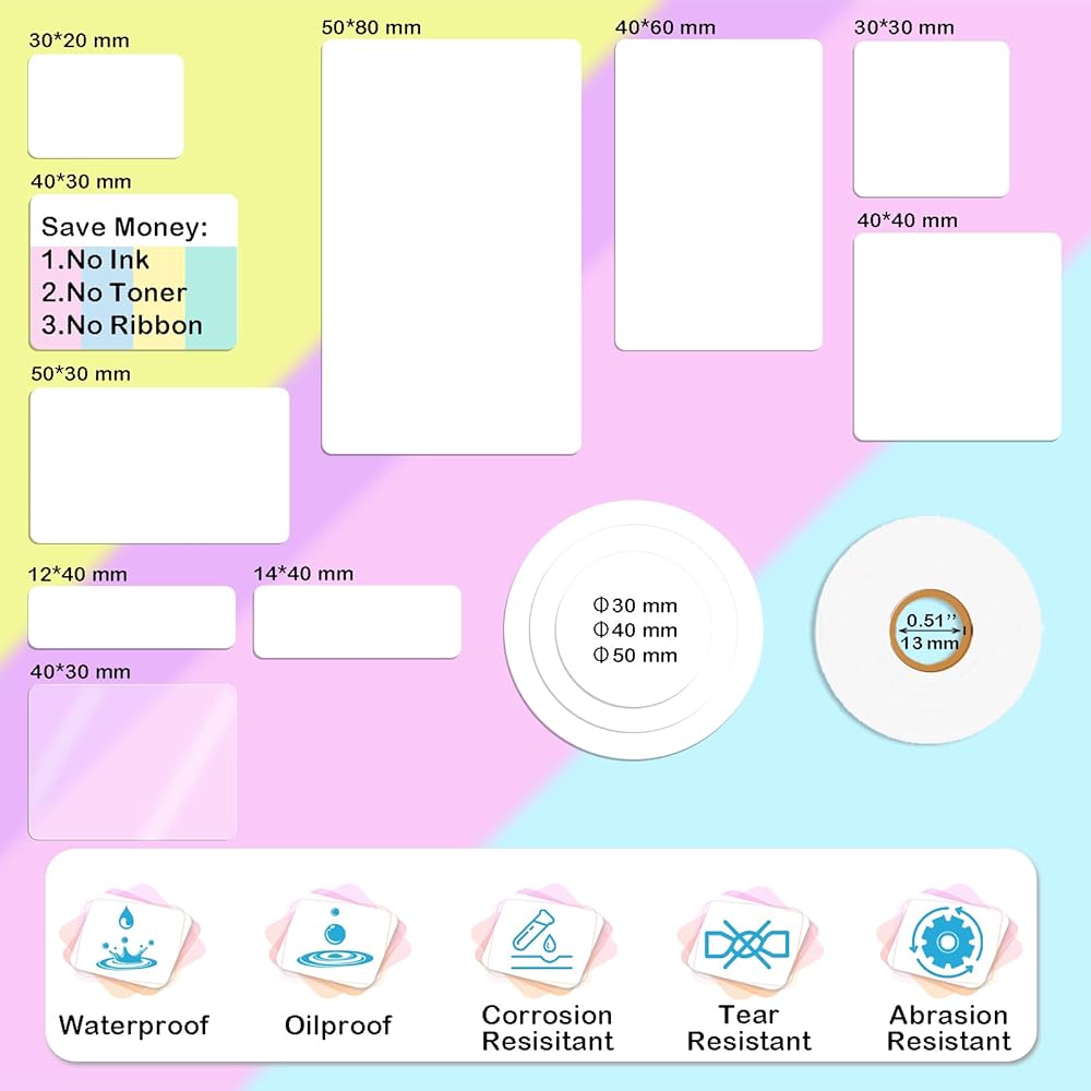• 【توافق جيد】متوافق مع Phomemo D30/D35، Nelko P21 وما إلى ذلك. يستخدم لتسمية الباركود، وتسمية رمز الاستجابة السريعة، وتسمية السعر، وتسمية المنتج، وتسمية علامة الاسم، وتسمية التصنيف، وتسمية التذكير وما إلى ذلك.
