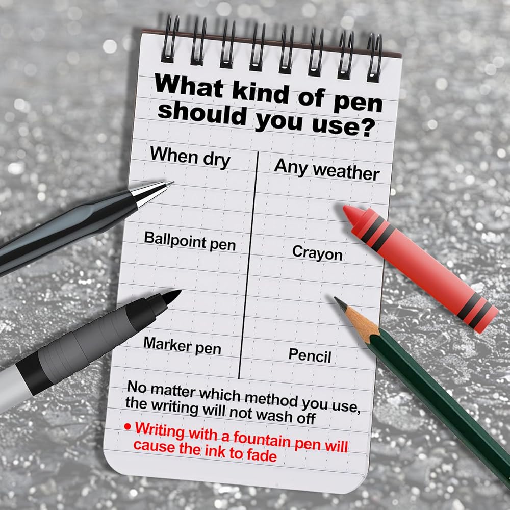 Our 4 Pack Waterproof Notebooks are essential for on-the-go note-taking! As waterproof notebook, pocket notebook, and all weather notebook, they're tear-proof, moisture-proof, and fit easily into pockets—suitable for police use, outdoor activities, school, or office. Crafted from waterproof paper, they keep notes intact in any condition, making them a reliable choice for daily or tough environments