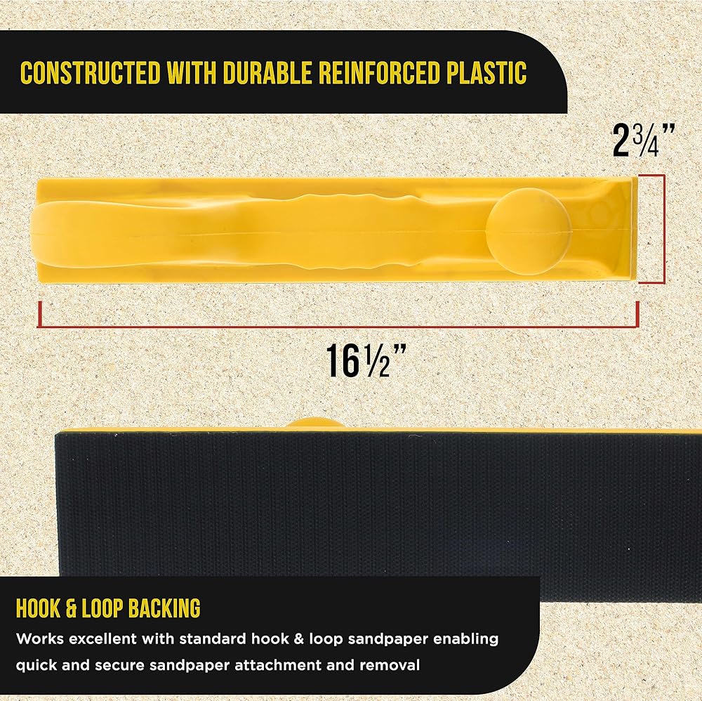 • A premium-quality 2-3/4" wide longboard hand sanding block, which is the standard width of longboard file sandpaper. You can easily attach either loop & loop or PSA pressure-sensitive adhesive longboard file sandpaper sheets to it. The block is easy to grip for even control when sanding flat, tight corners, contours, and other hard-to-reach areas.
