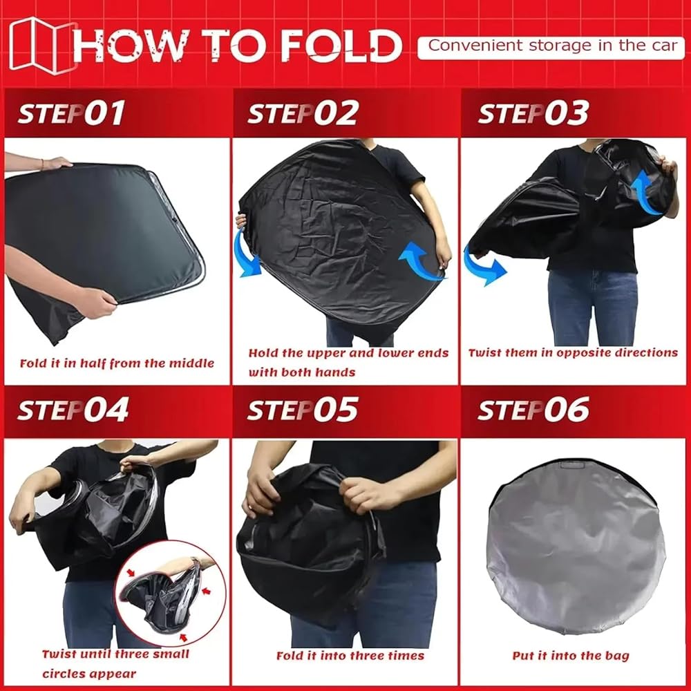 The Sun Shield for Car Windshield comes with a storage bag to store the folded Sun Cover for Car Windshield in a suitable place.