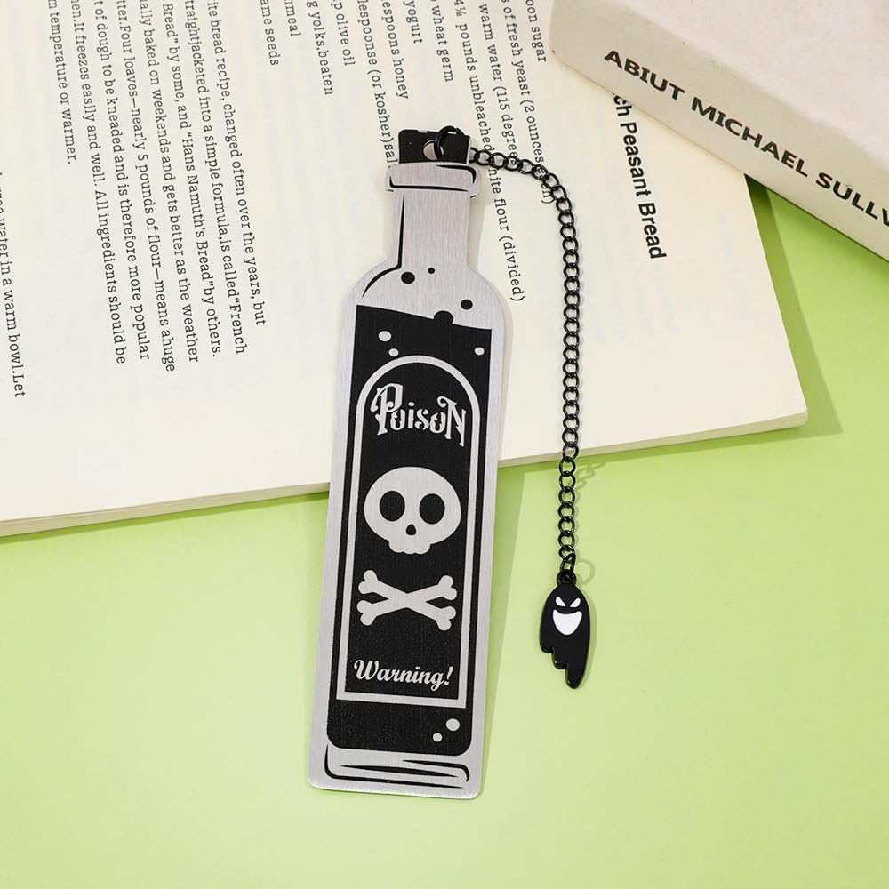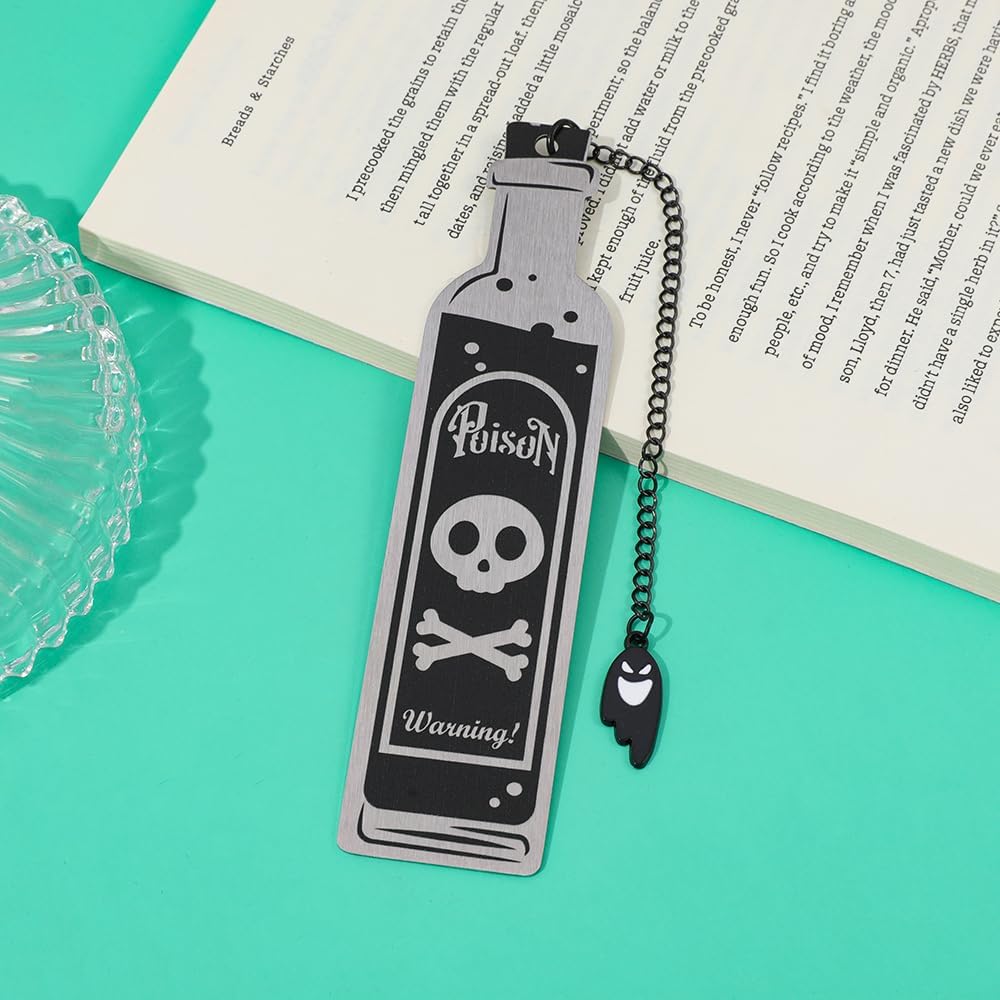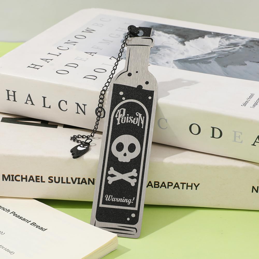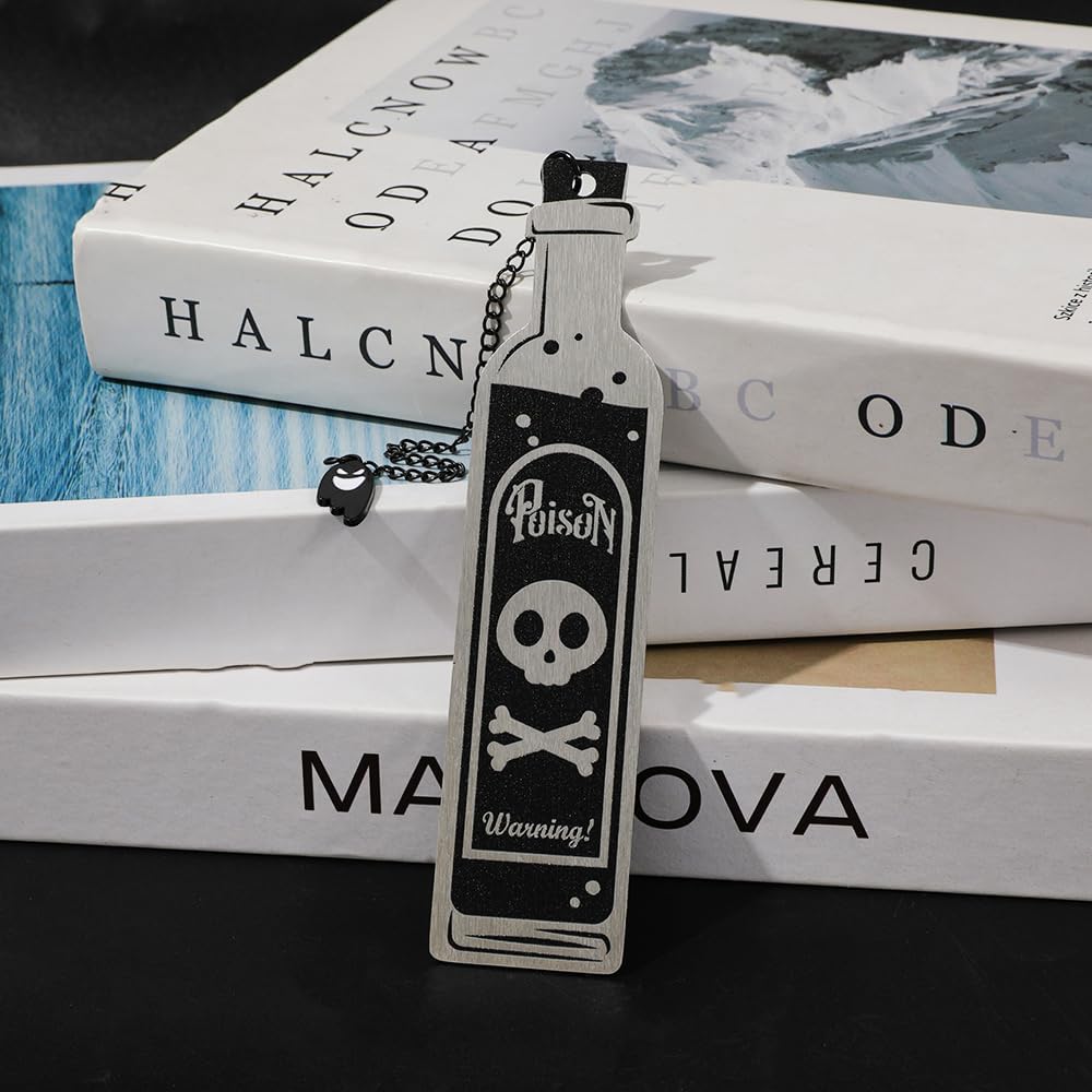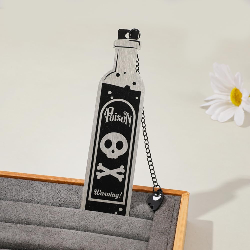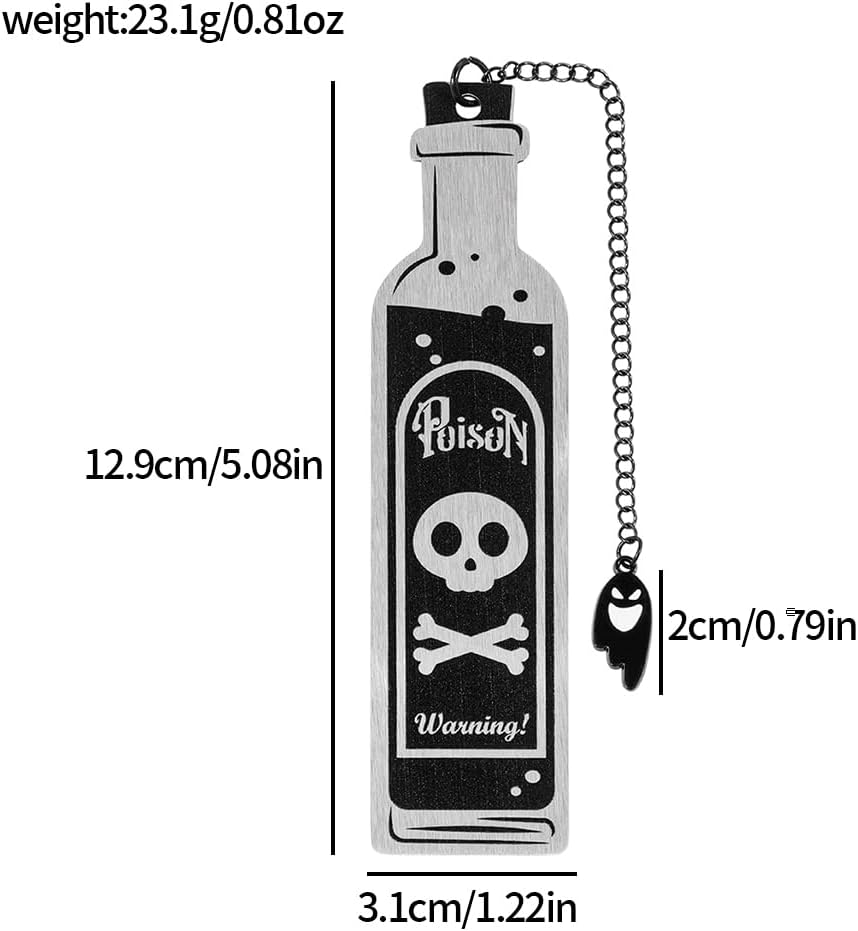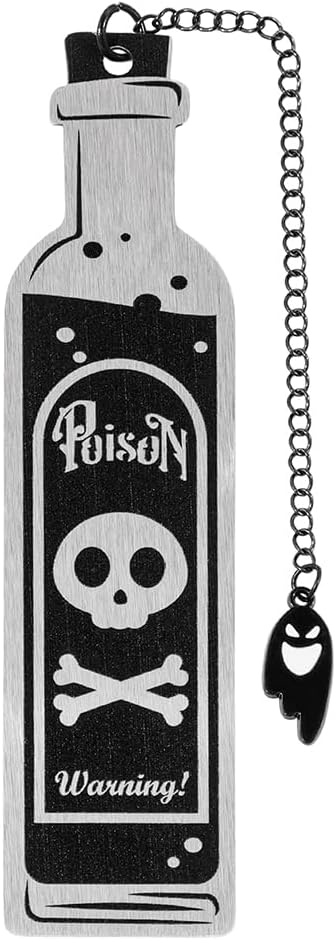 Unique Poison Bottle Bookmark Shape: Crafted in the shape of a classic poison bottle with a striking warning symbol, this bookmark is both whimsical and wicked. It's a conversation starter and a must-have accessory for horror enthusiasts and collectors