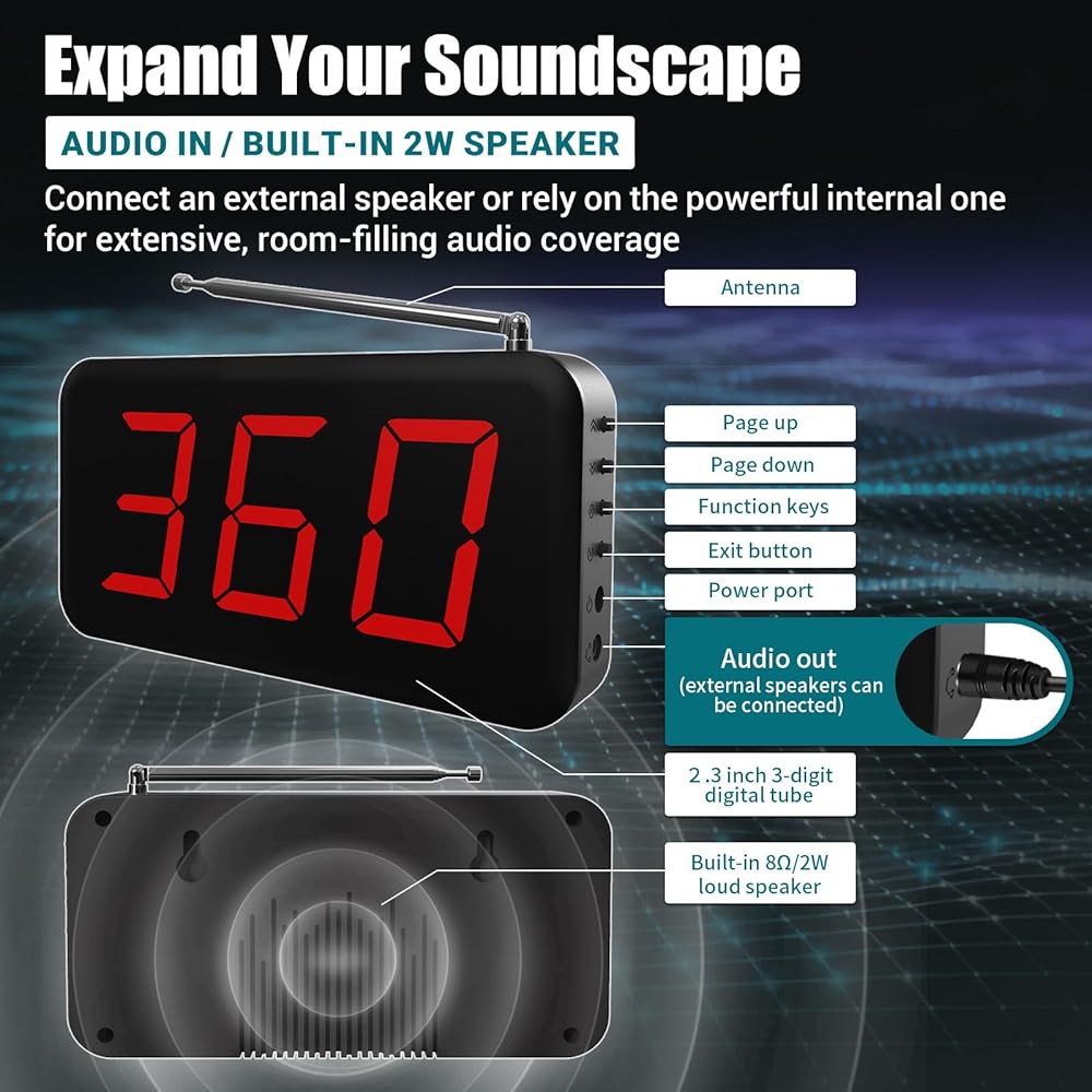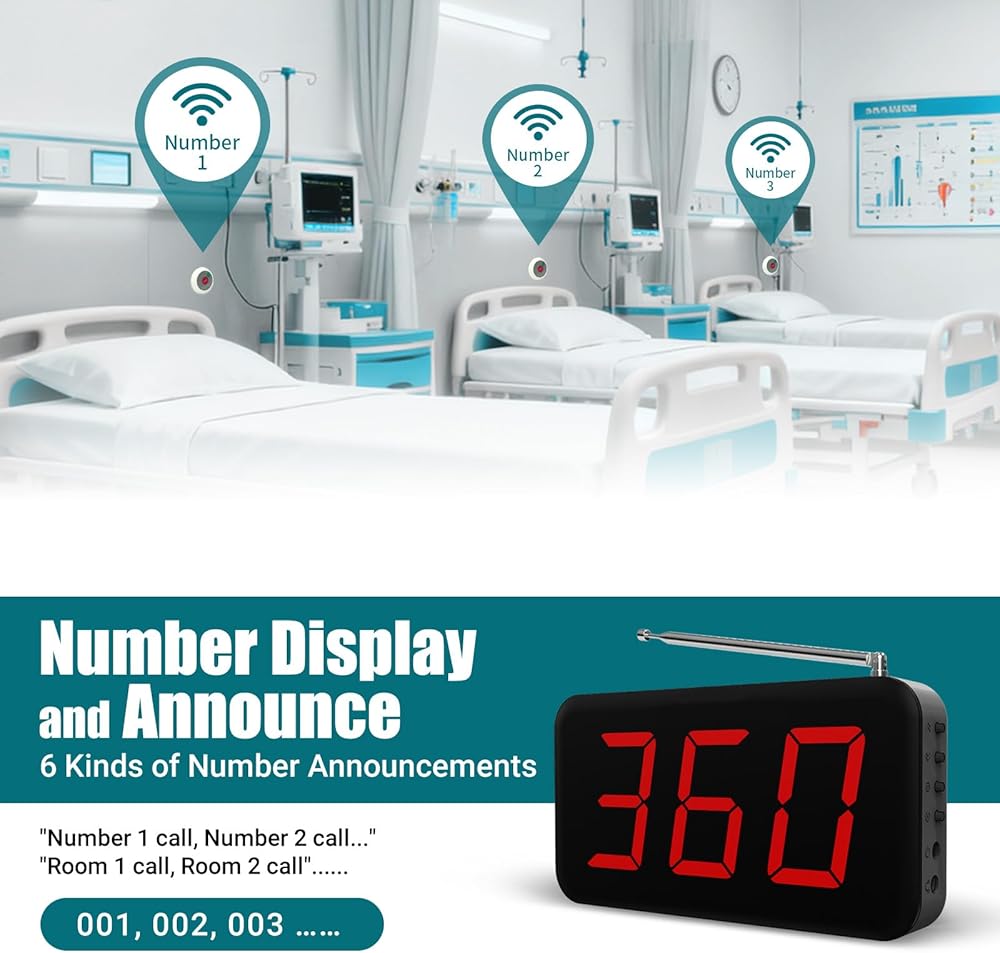 【عرض رقم الغرفة الشفاف】يتميز نظام إضاءة المكالمات هذا المزود بـ 8 أزرار اتصال بشاشة رقمية مقاس 2.3 بوصة مكونة من 3 أرقام، ويحدد جهاز الاستقبال بصريًا ومسموعًا الغرفة أو الشخص الذي يتصل به، مما يضمن استجابة سريعة ودقيقة.