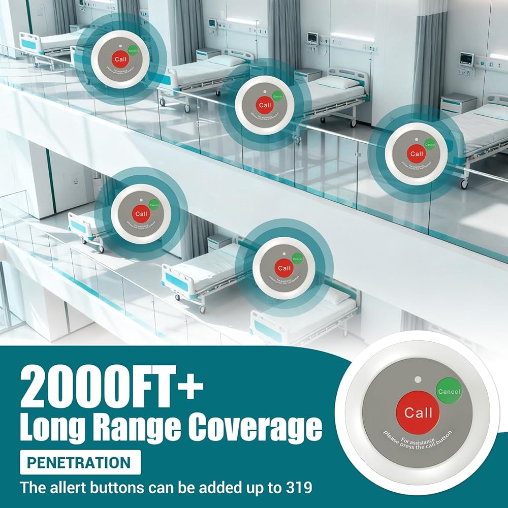 【تشغيل بسيط وسهل التوسيع】 تم تصميم أجهزة الاستدعاء اللاسلكية لمقدمي الرعاية للاستخدام البديهي - فقط اضغط على الزر لتنبيه الموظفين. يدعم التوسع بما يصل إلى 319 زر اتصال، وهو مثالي للمرافق الكبيرة وإعدادات الغرف المتعددة.