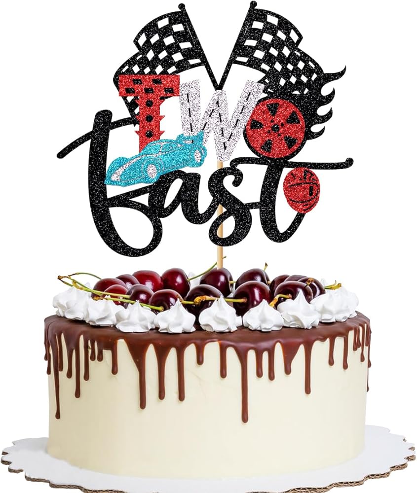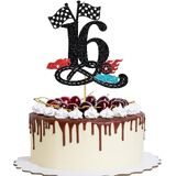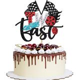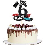 Race Car 6th Birthday Cake Topper,Glitter Fast Six Cake Topper,Checkered Flag, Racing Track Six Year Old Birthday,Boys Girls Checkered Flag Themed Party Supplies