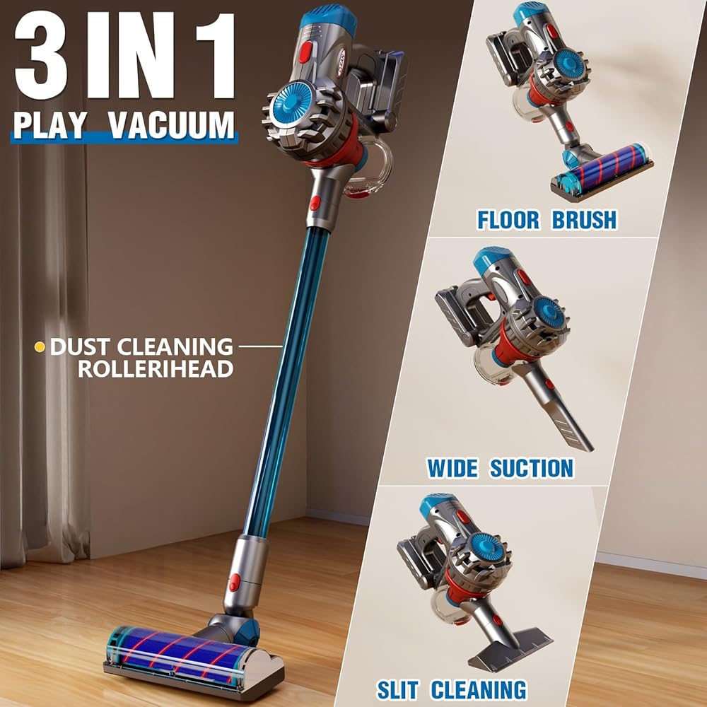 【Fun Gameplay】Switch between four different cleaning attachments at will, supporting both automatic and manual modes. Whether it's smooth floors, furniture crevices, soft sofas, or bed corners, it handles them all with ease. This 4-in-1 multi-functional vacuum toy set lets children experience the joy of cleaning while playing, fostering hands-on skills and a sense of responsibility.