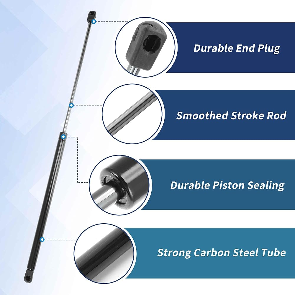 • مادة متينة: دعامة دعم الرفع مصنوعة من مادة فولاذية كربونية متينة، ليس من السهل الانحناء والتشوه، قوية لدعم غطاء غطاء السيارة.