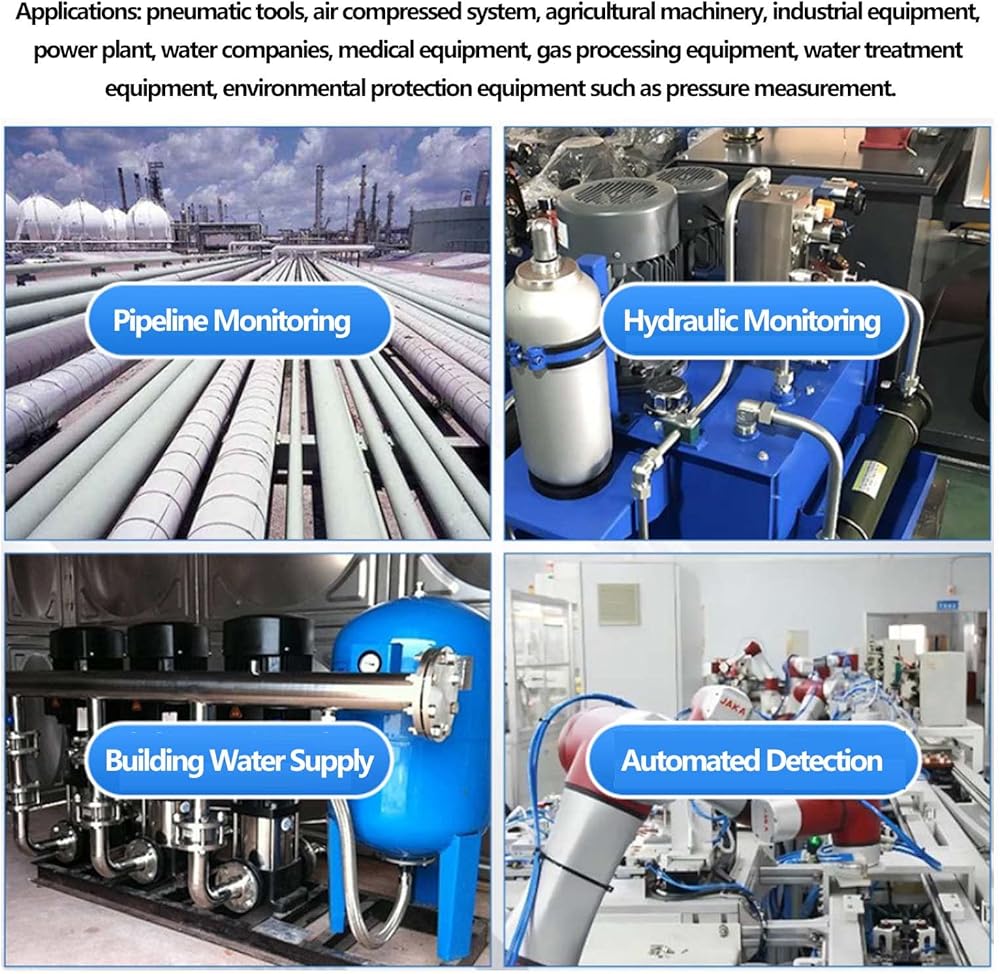 الاستخدام على نطاق واسع: يستخدم مقياس الضغط الهيدروليكي PSI على نطاق واسع خلال الحياة اليومية، ويستخدم بشكل رئيسي في الأدوات الهوائية، ونظام ضغط الهواء، والآلات الزراعية، والمعدات الصناعية، ومحطات الطاقة، وشركات المياه، والمعدات الطبية، ومعدات معالجة الغاز، ومعدات معالجة المياه. معدات حماية البيئة مثل قياس الضغط