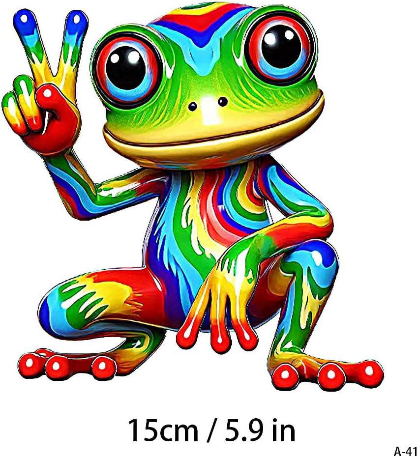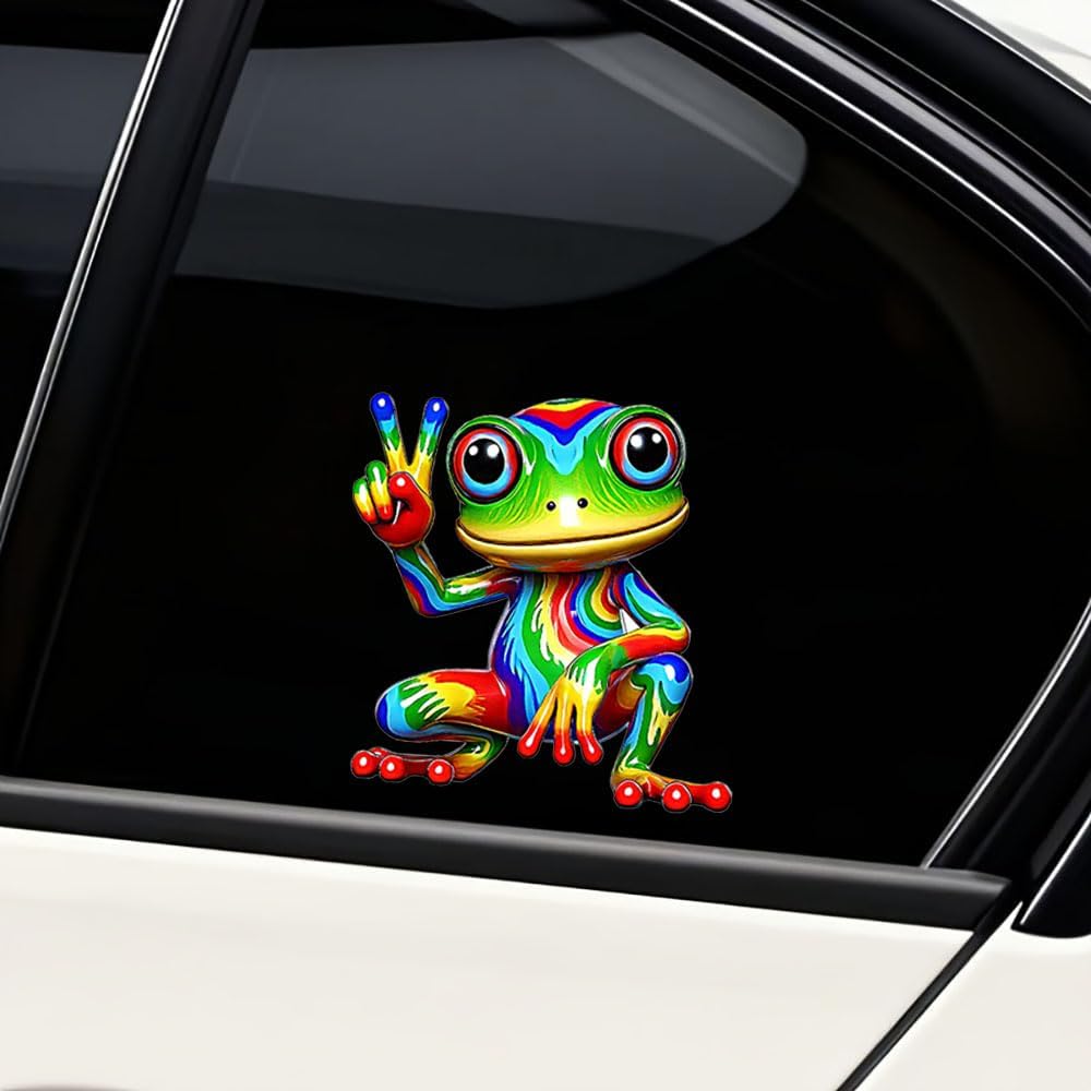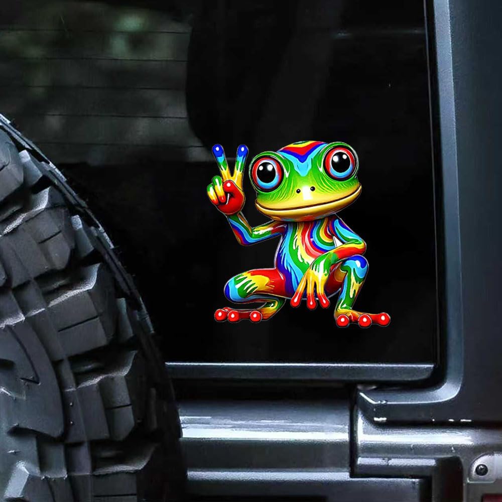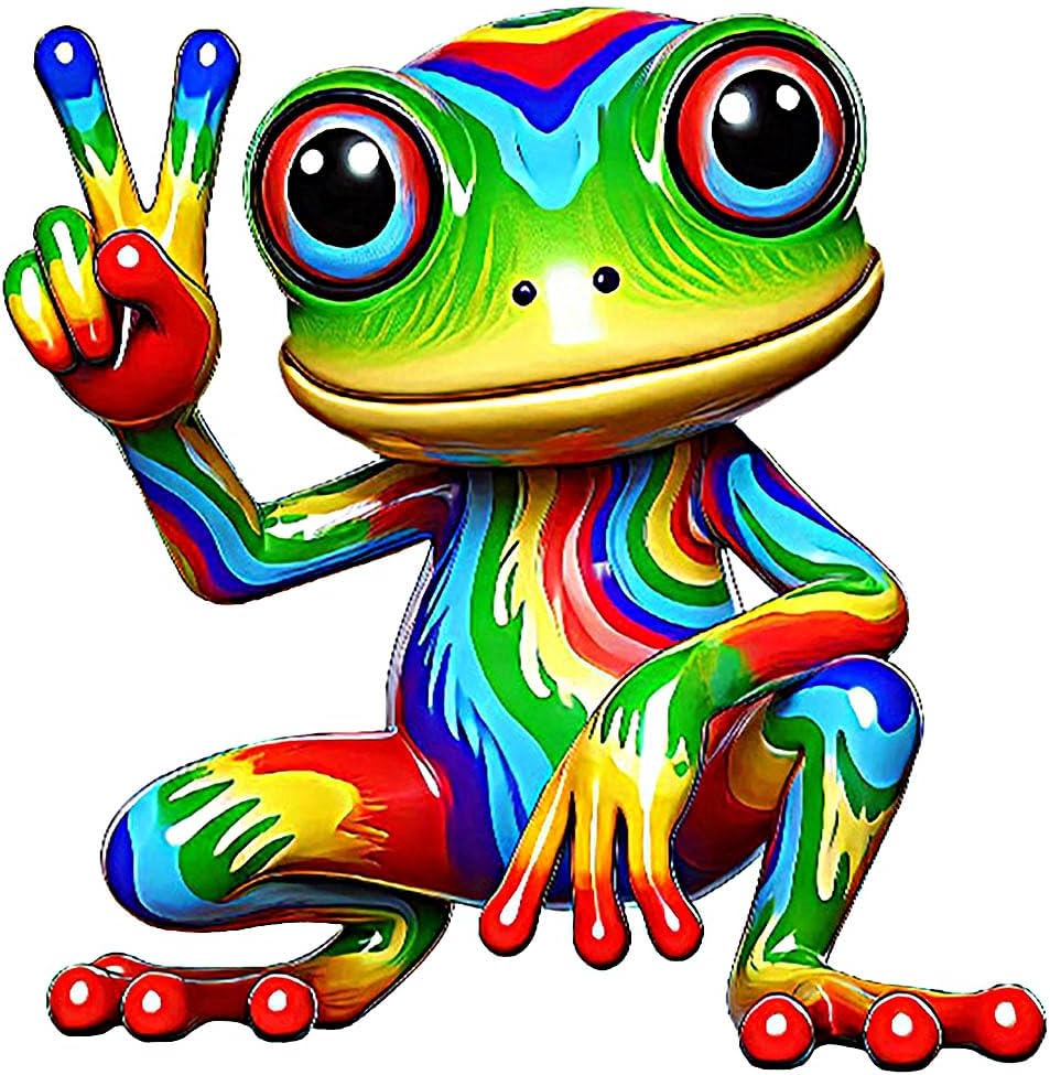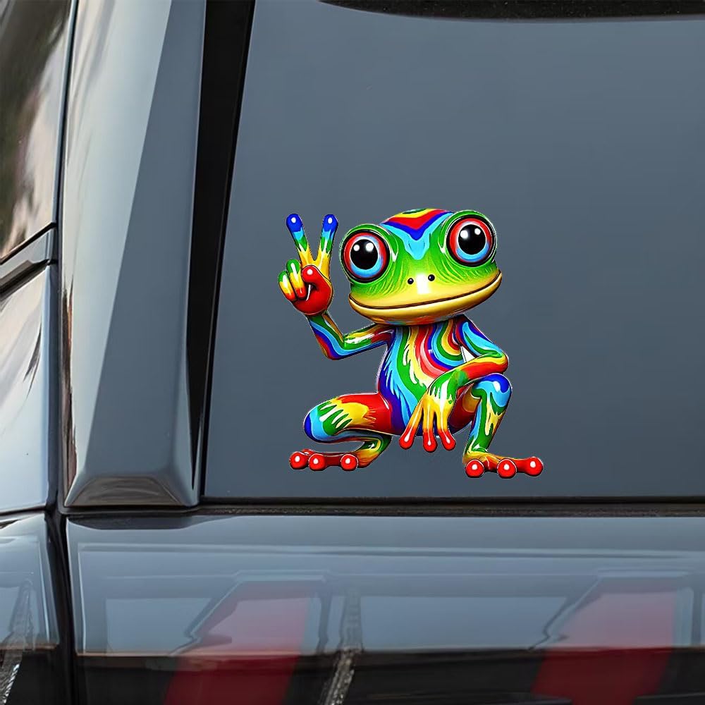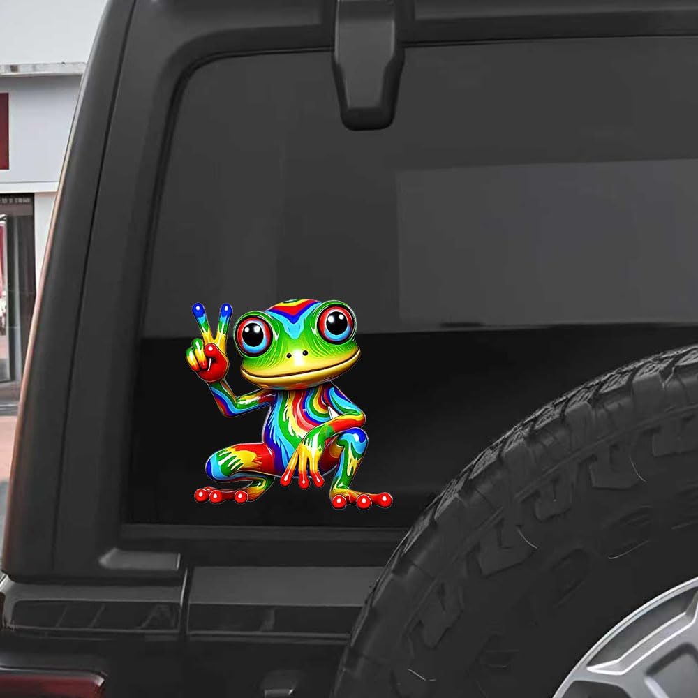 • VIBRANT DESIGN: Colorful rainbow peace frog decal featuring bright, eye-catching colors and detailed artwork with a fun peace sign gesture