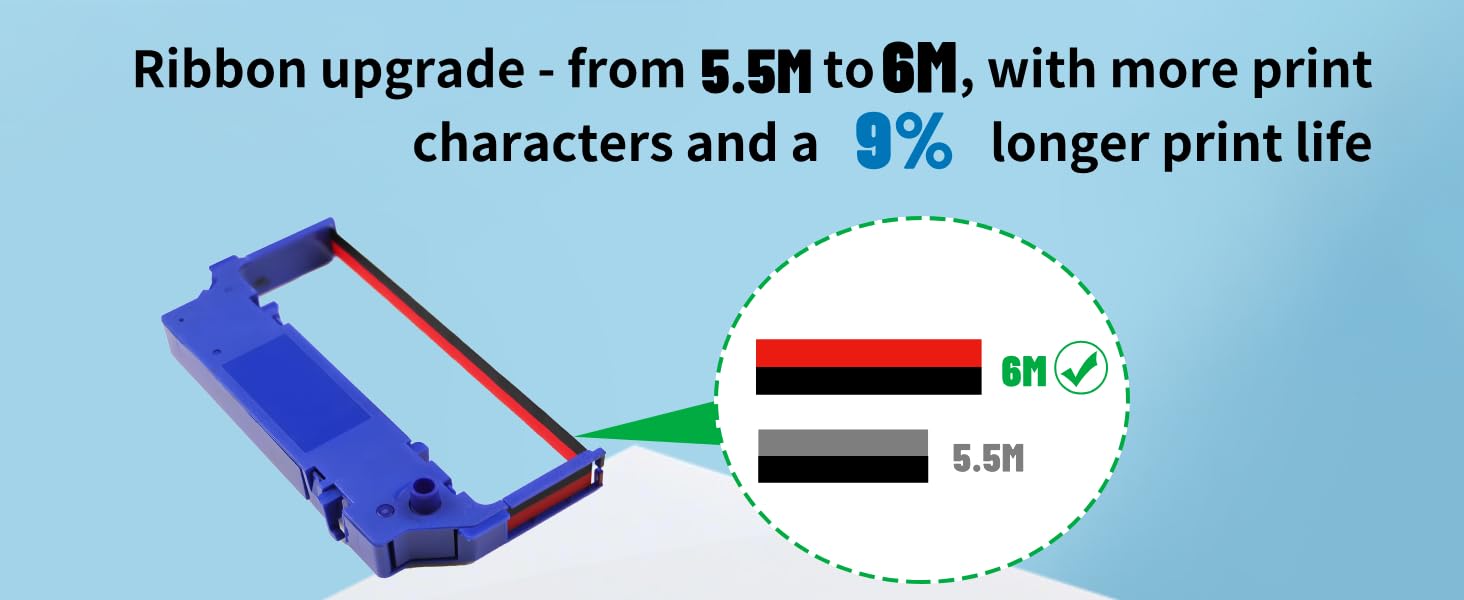 【عمر افتراضي ممتد】تدوم أشرطة 6M أطول بنسبة 9% من 5.5M القياسية، مما يقلل من تكرار الاستبدال. مثالية للطباعة بكميات كبيرة، مما يوفر لك الوقت والمال