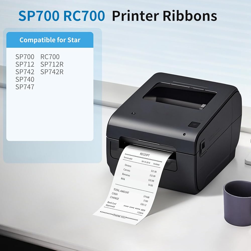 توافق واسع: متوافق مع ماكينة طباعة الشريط Star SP700، RC700، SP712، SP712R، SP717، SP742، SP742R، SP740، SP747