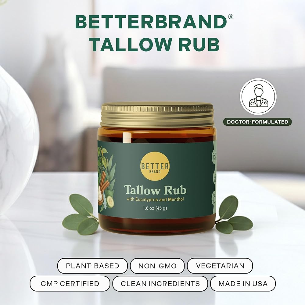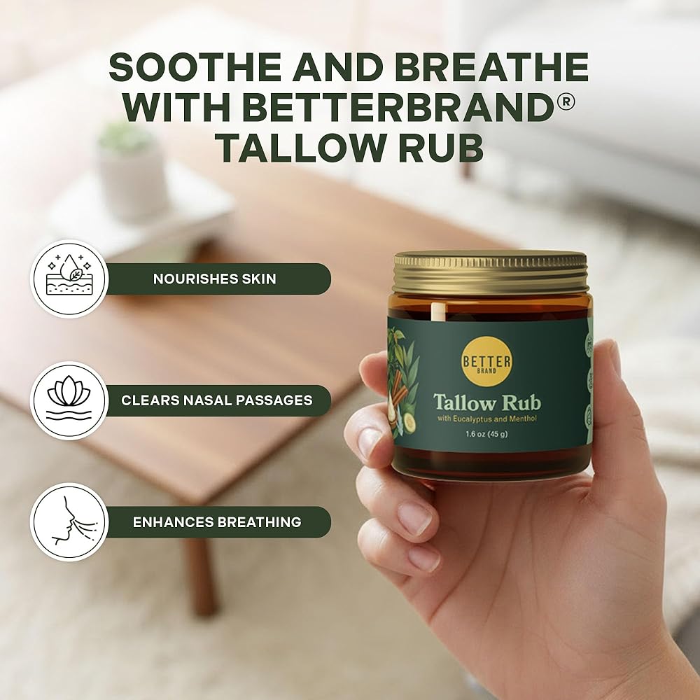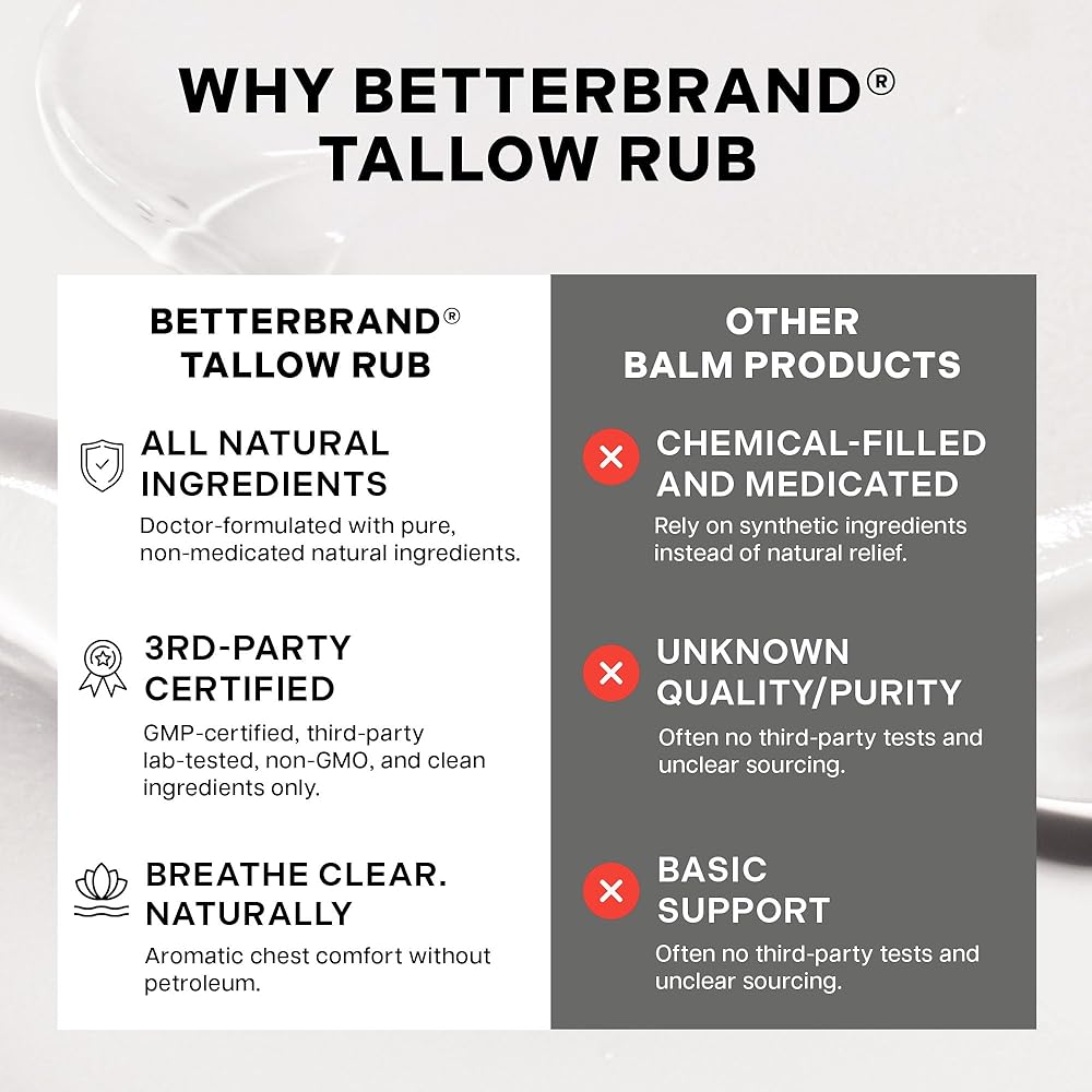 فرك الشحم الطبي الخالي من البترول من Betterbrand - بديل فرك البخار الطبيعي مع المنثول والأوكالبتوس - بلسم الشحم الذي يتغذى على العشب لتخفيف احتقان الصدر - صنع في الولايات المتحدة الأمريكية - 1.6oz